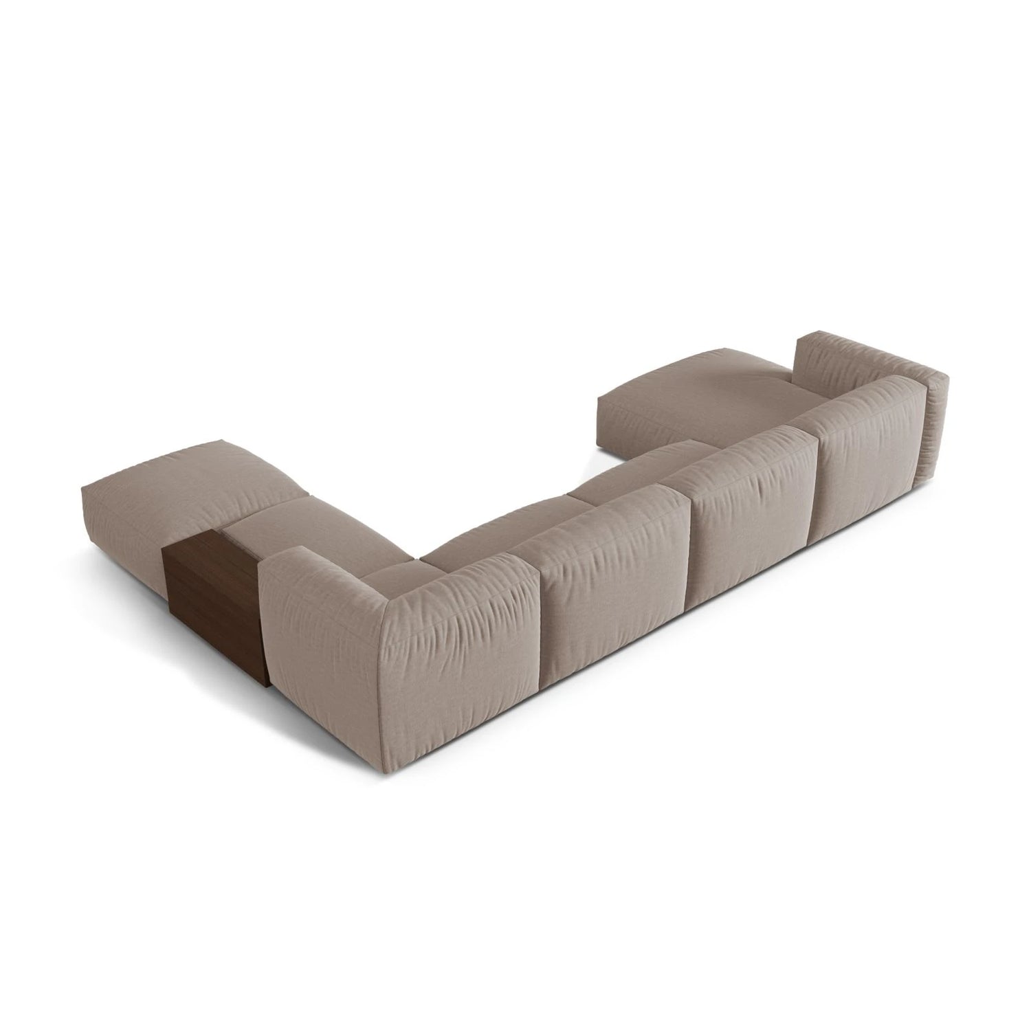 Martina modulares Panorama-Sofa, Rechts, mit Bezug aus Samt (Vog1) in Leichtes Beige, 406x280 cm