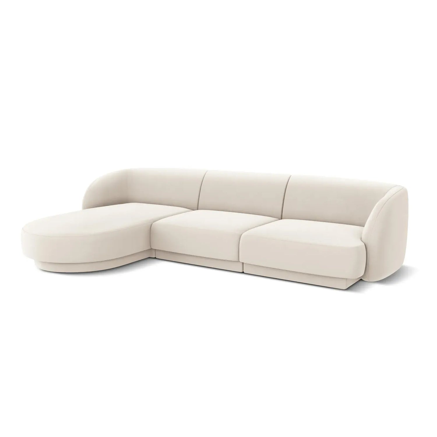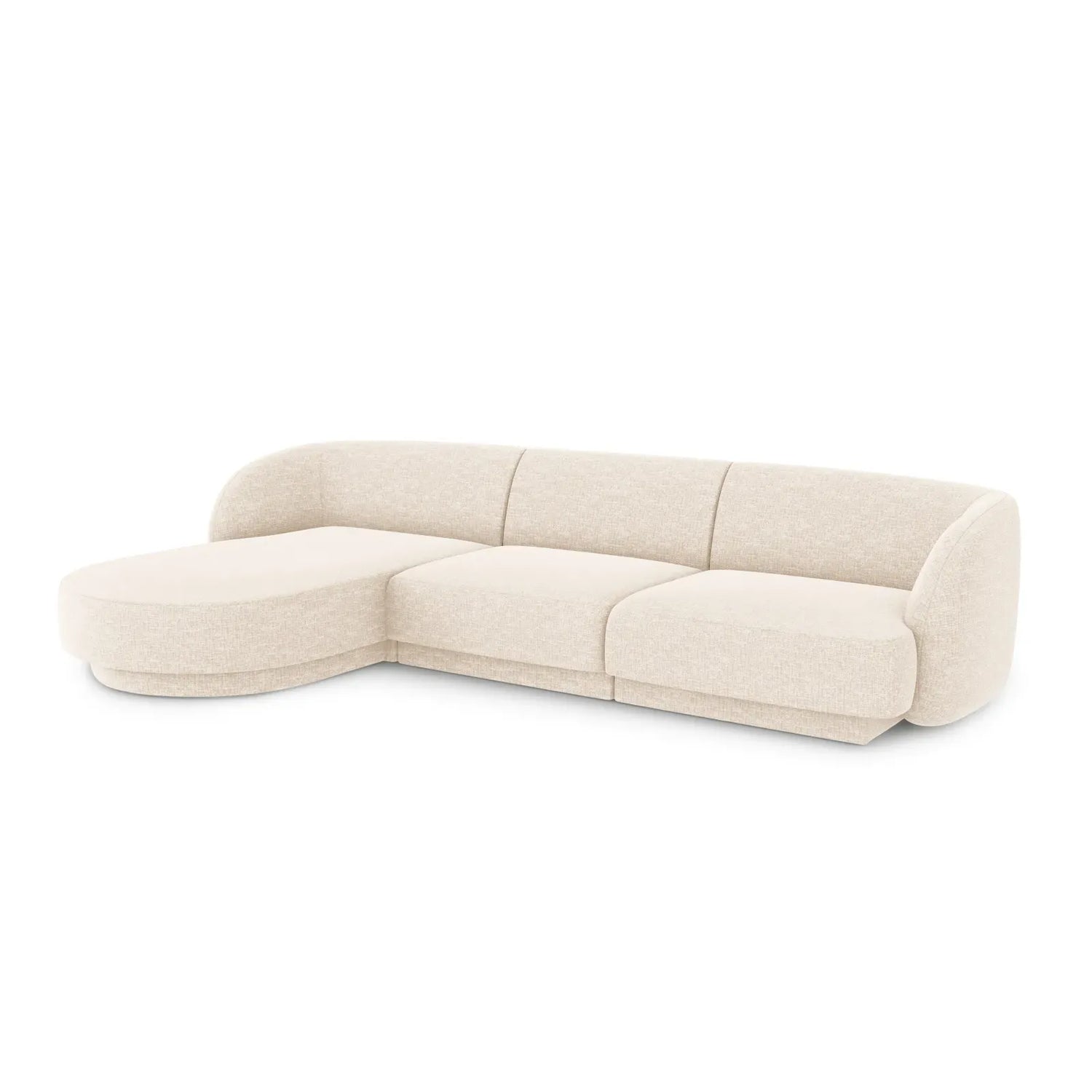 Miley 4-Sitzer Ecksofa Links mit Bezug aus Samt oder Chenille, 255x156 cm - Chenille (Haga23), Leichtes Beige ist auf Lager und wird versandt, sobald es wieder verfügbar ist