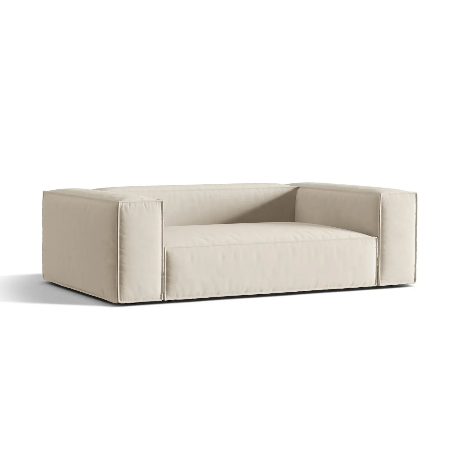 Das Nuria 3-Sitzer-Sofa ist für mühelose Entspannung konzipiert. Mit seinen tiefen Sitzen und den plüschigen Kissen bietet es ein wahrhaft einladendes Gefühl. Seine geometrische, aber dennoch weiche Form macht es perfekt für langsame Morgen, faule Nachmittage und gemütliche Abende mit Ihrer Familie oder Freunden.