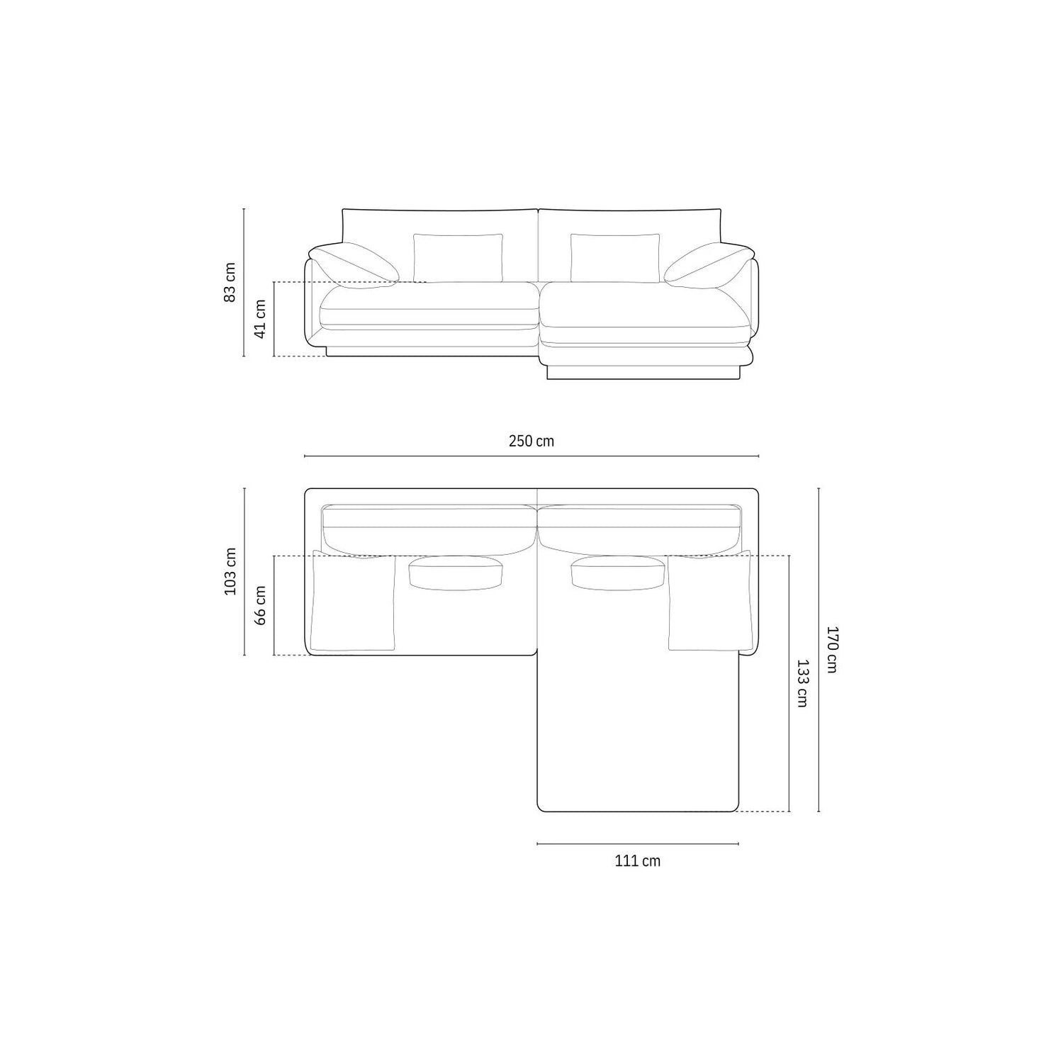 Torino Ecksofa, Rechte Seite, aus Samt oder Strukturstoff, 250x170 cm - Samt (CasSan), Ecru ist auf Lager und wird versandt, sobald es wieder verfügbar ist