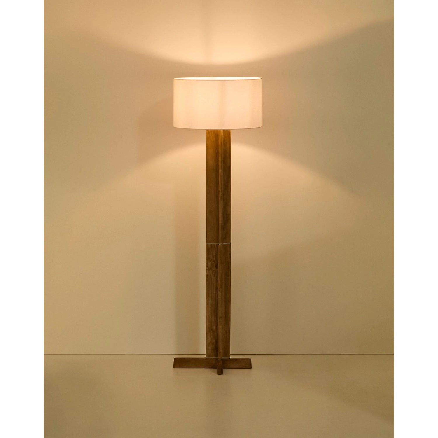 Stehlampe Niani aus Kautschukholz mit Finish in Naturton und elfenbeinfarbenem Baumwollschirm ist auf Lager und wird versandt, sobald es wieder verfügbar ist