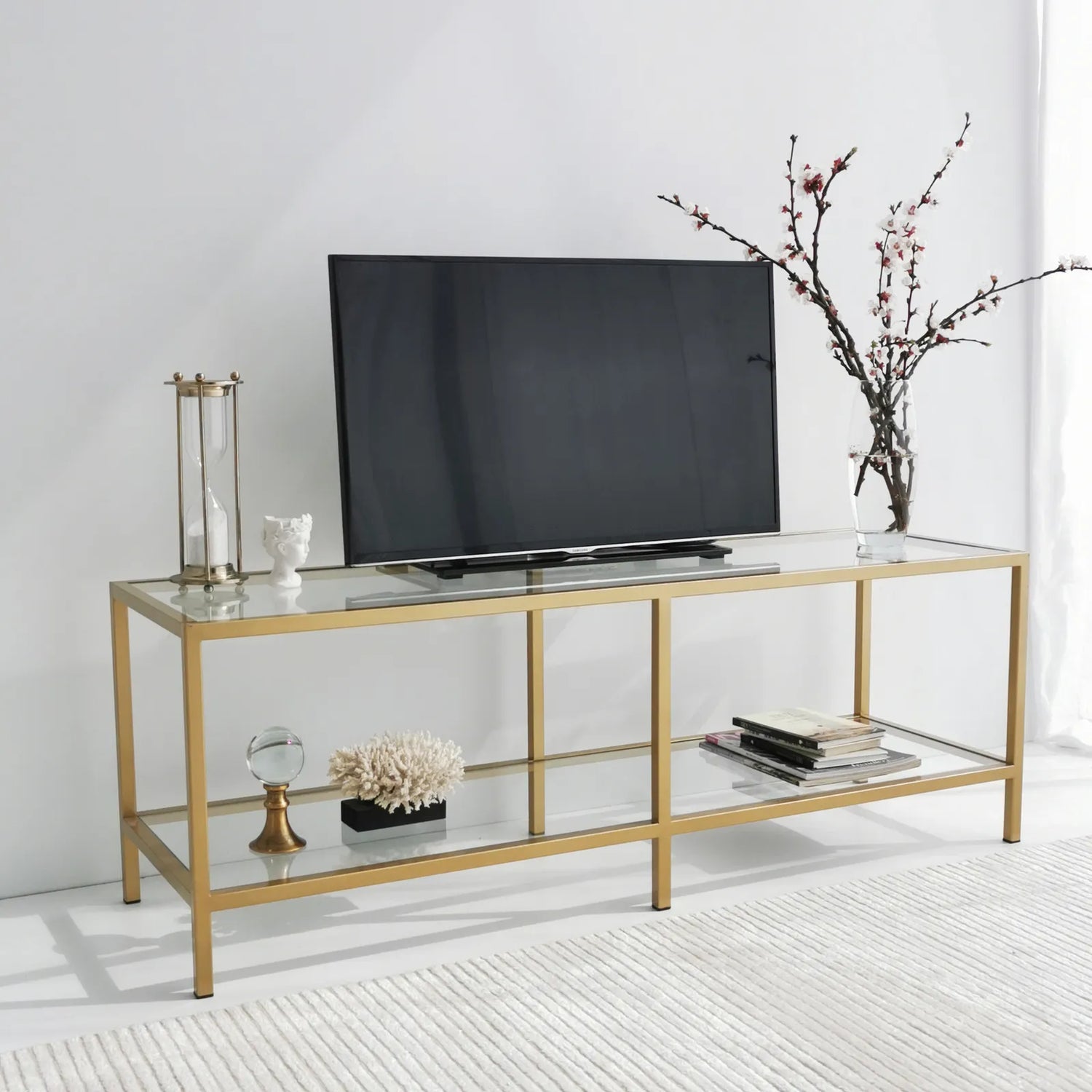 TV-Schrank Basic aus Metall und gehärtetem Glas, 130×40×45 cm - Transparent und matten Schwarz ist auf Lager und wird versandt, sobald es wieder verfügbar ist