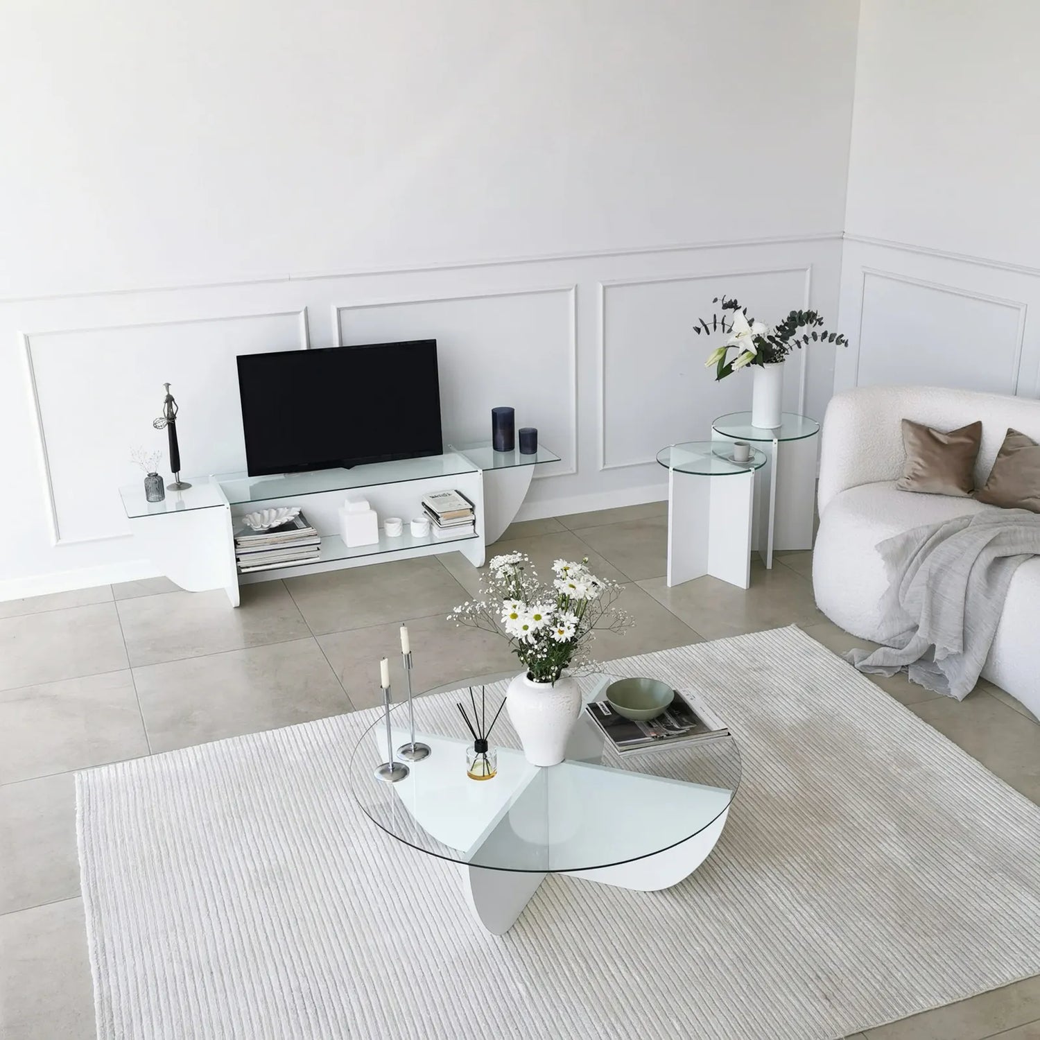 Unser TV-Ständer besteht aus 100% gehärtetem Glas und strahlt Eleganz und Raffinesse aus. Das schlichte und moderne Design fügt sich mühelos in jeden Einrichtungsstil ein und verleiht Ihrem Wohnbereich einen Hauch von Klasse. Das 18 mm dicke Glas garantiert Langlebigkeit und Stabilität und macht ihn zu einer langlebigen Investition für Ihr Zuhause.