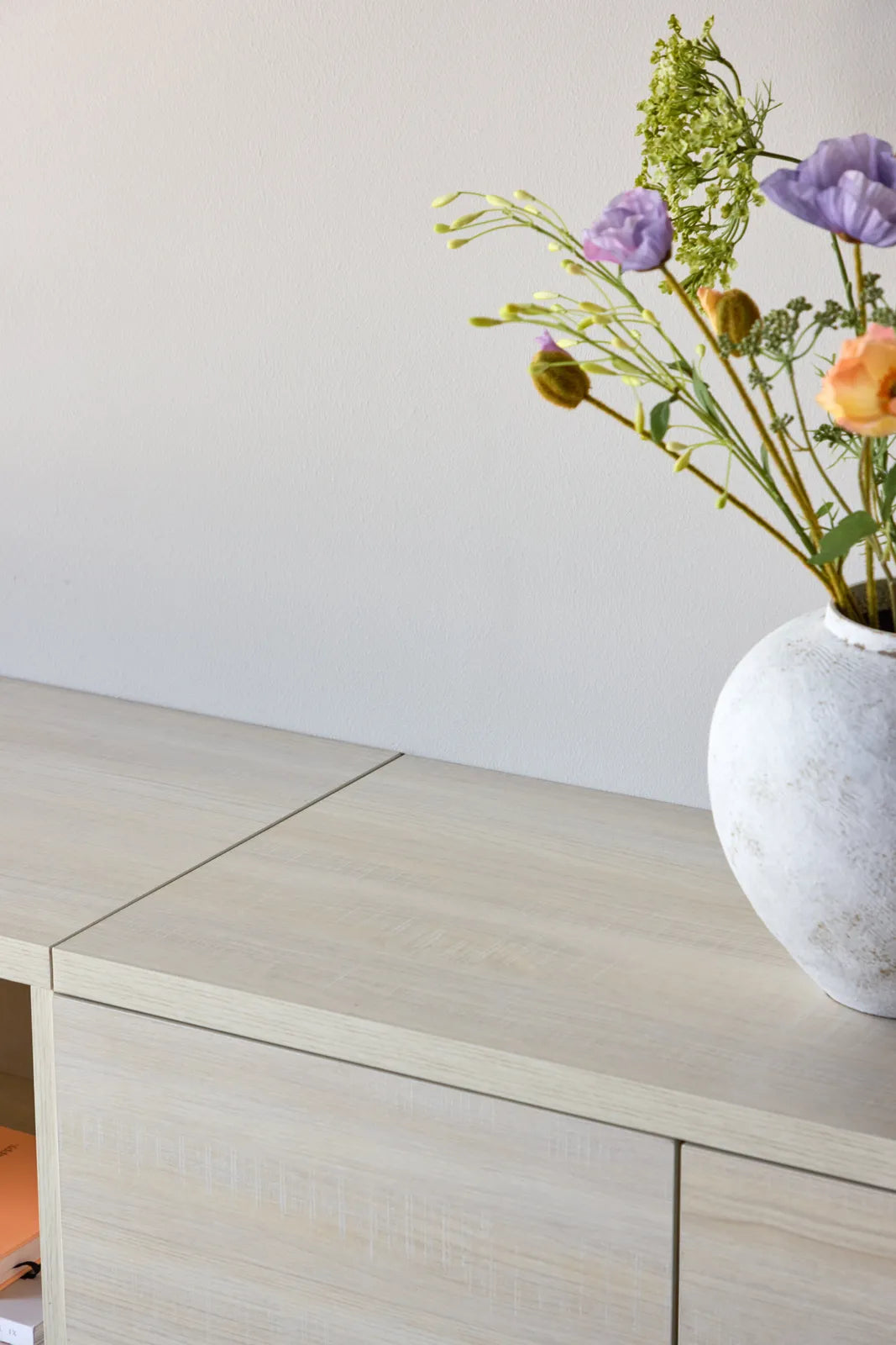 Nomi ist eine moderne TV-Bank mit einem wunderschönen, hell weißgewaschenen Finish, das im Raum einen klaren und harmonischen Eindruck hinterlässt. Das durchdachte Design vereint Funktion mit Form – perfekt für das stilbewusste Zuhause.