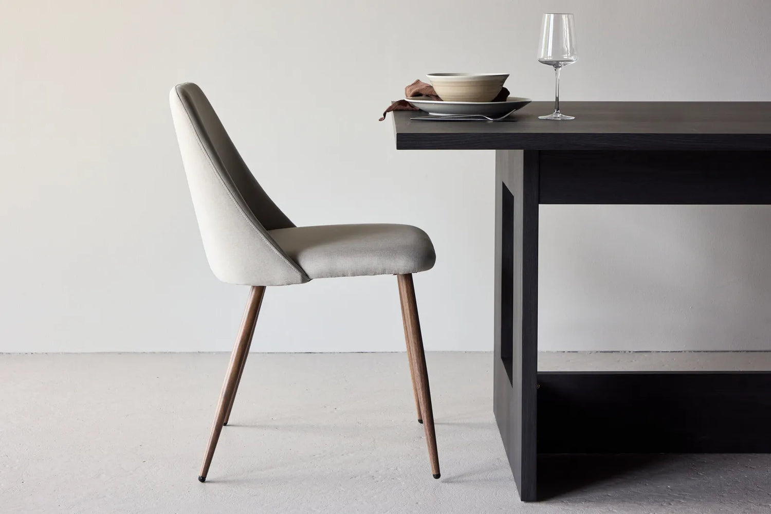 Night ist die neueste Ergänzung unserer beliebten Night-Serie – ein elegantes und modernes Design mit einzigartigem Charakter. Die tiefen Mocca-Füße und der mit weichem beigem Stoff bezogene Sitz erzeugen einen stilvollen Kontrast, der sofort ins Auge fällt. Das minimalistische Design des Stuhls ohne Armlehnen verleiht ihm einen offenen und einladenden Ausdruck, wodurch er sich leicht um einen Esstisch oder in anderen geselligen Räumen platzieren lässt. Der bequeme Sitz lädt dazu ein, etwas länger zu verweilen. Night ist der perfekte Stuhl für all jene, die Komfort mit einer klaren, zeitgenössischen Ästhetik verbinden möchten.