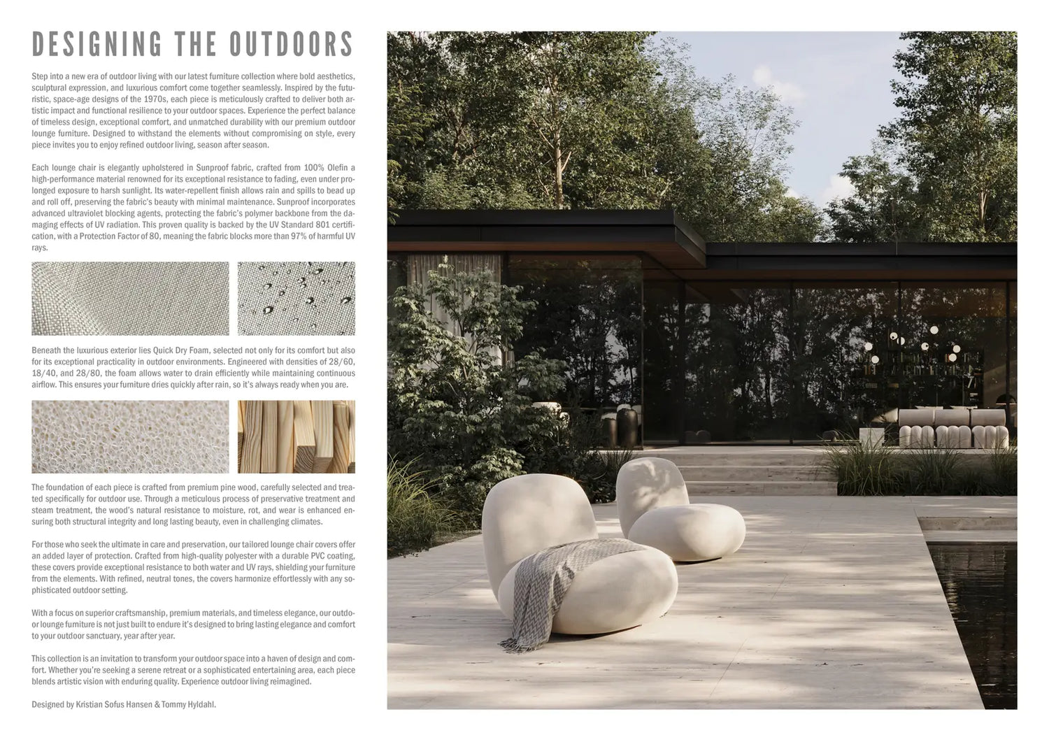 The cover is made of Sunproof, a high-quality, weather-resistant olefin fabric specifically designed for outdoor use. This material is resistant to rain, sunlight, and daily wear and tear. The Warm Ash color is a subtle gray-beige that blends harmoniously into natural surroundings.