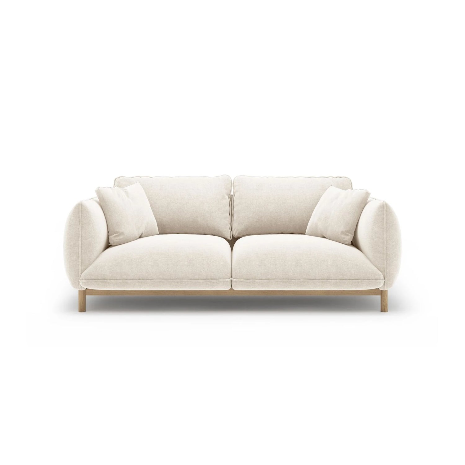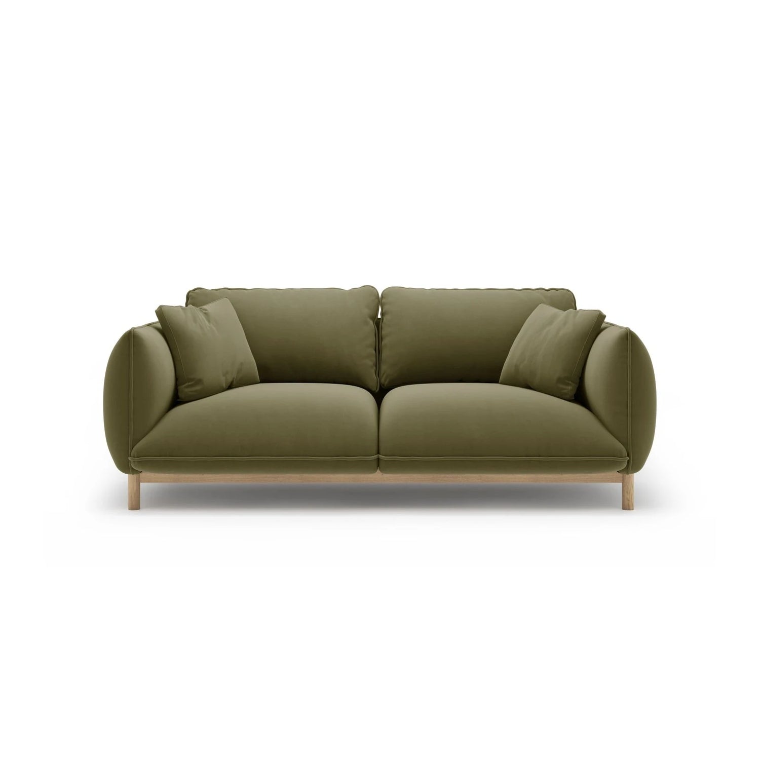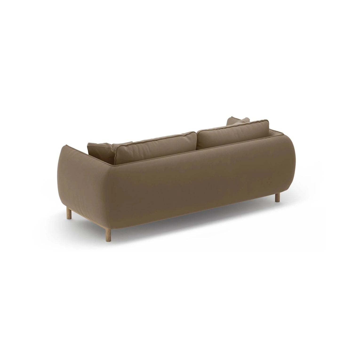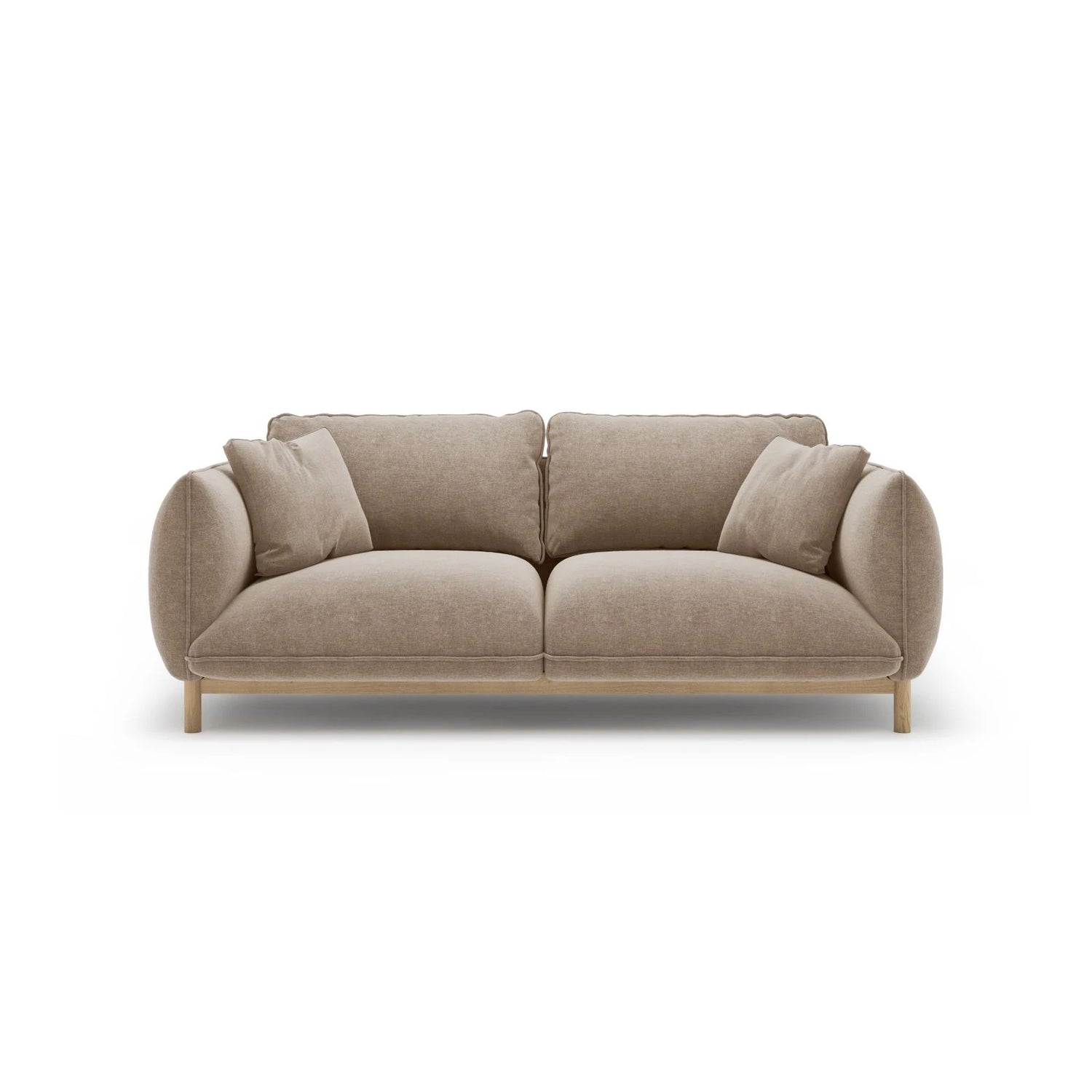 The Ada 2-seater sofa from Micadoni combines mid-century elegance with cozy comfort. With its rounded silhouette and wooden details, it's the perfect addition to small interiors without compromising on style.