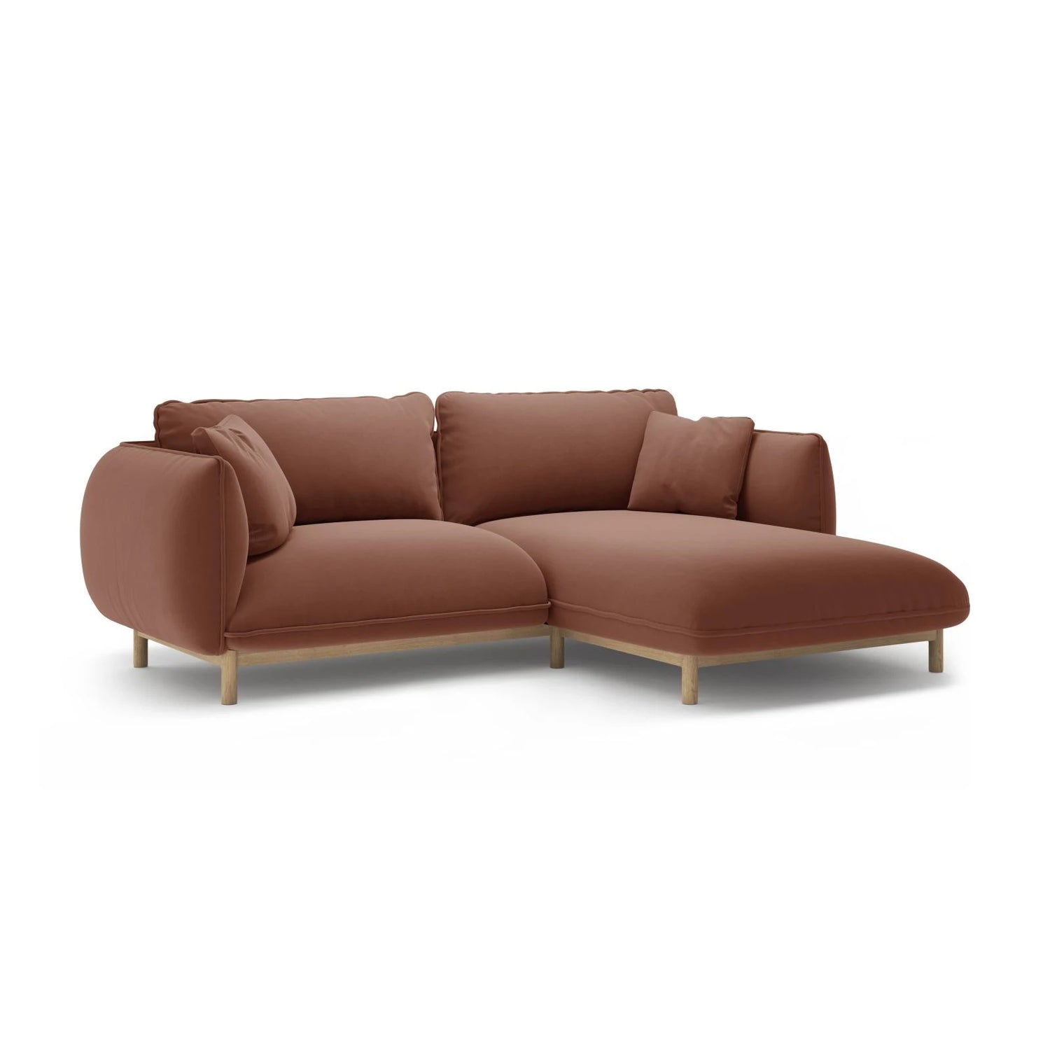 Ada corner sofa right in velvet or textured fabric, 220x179 cm