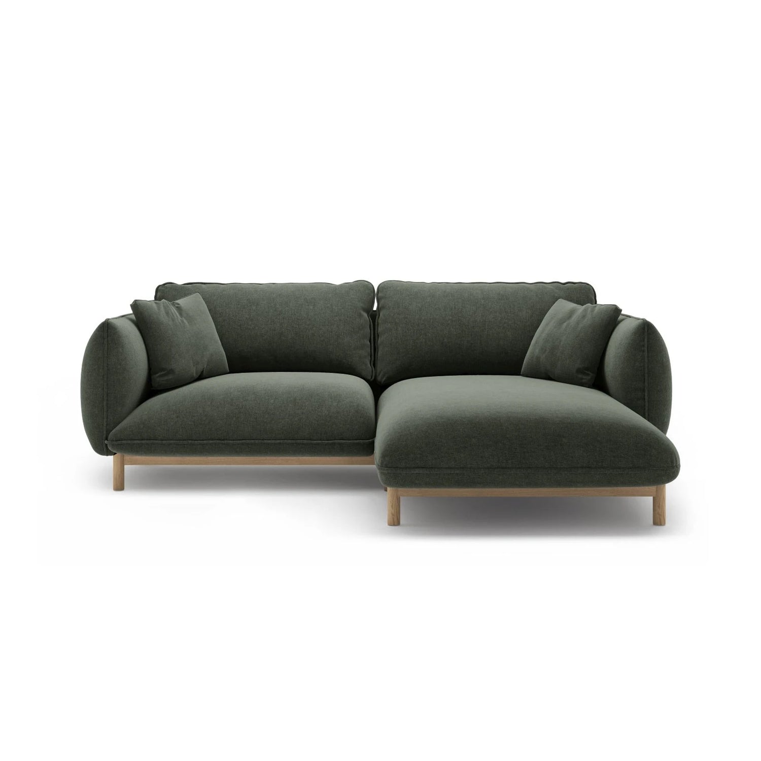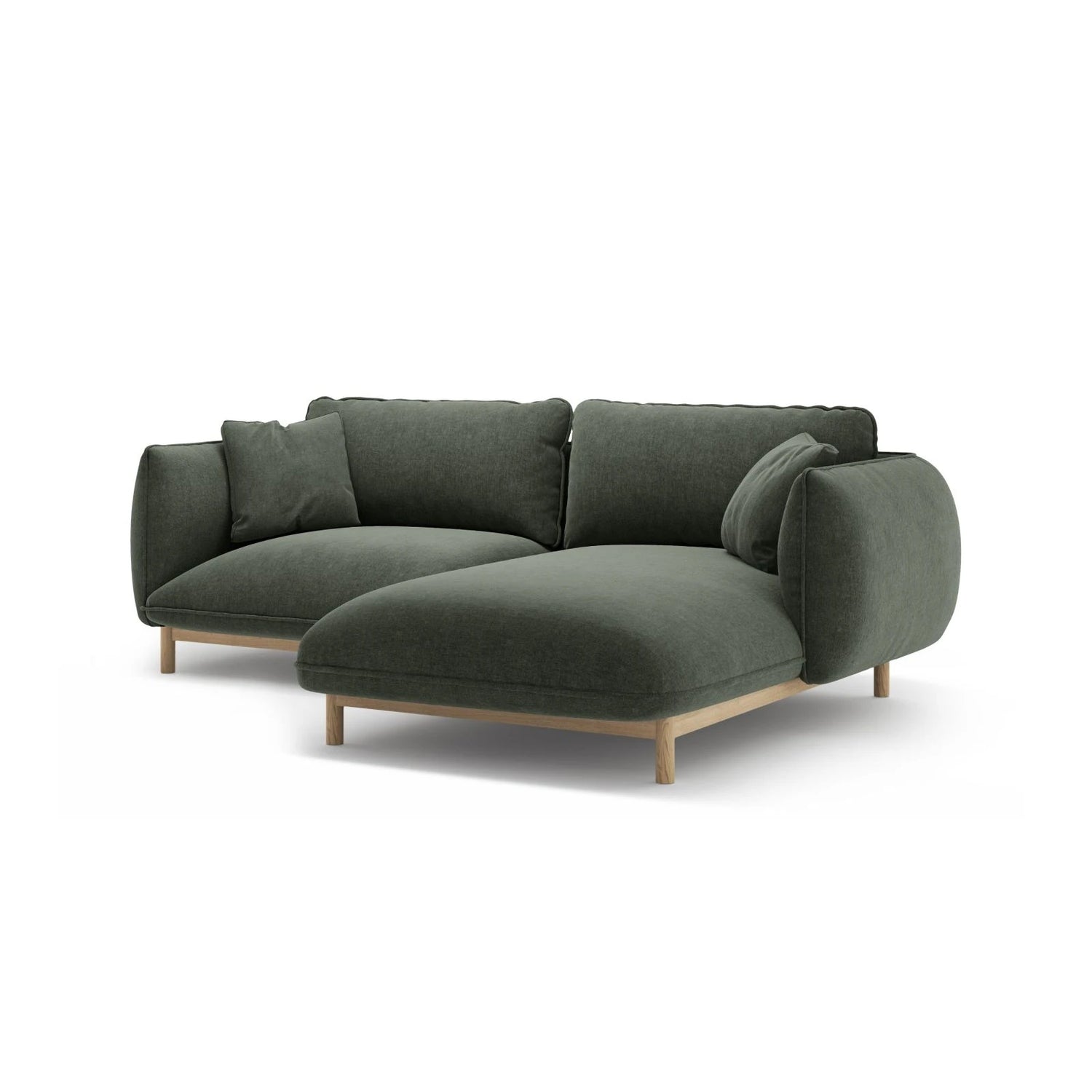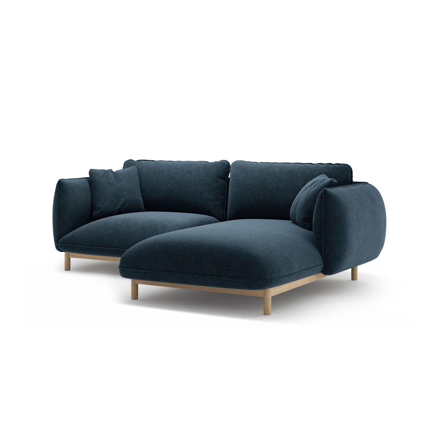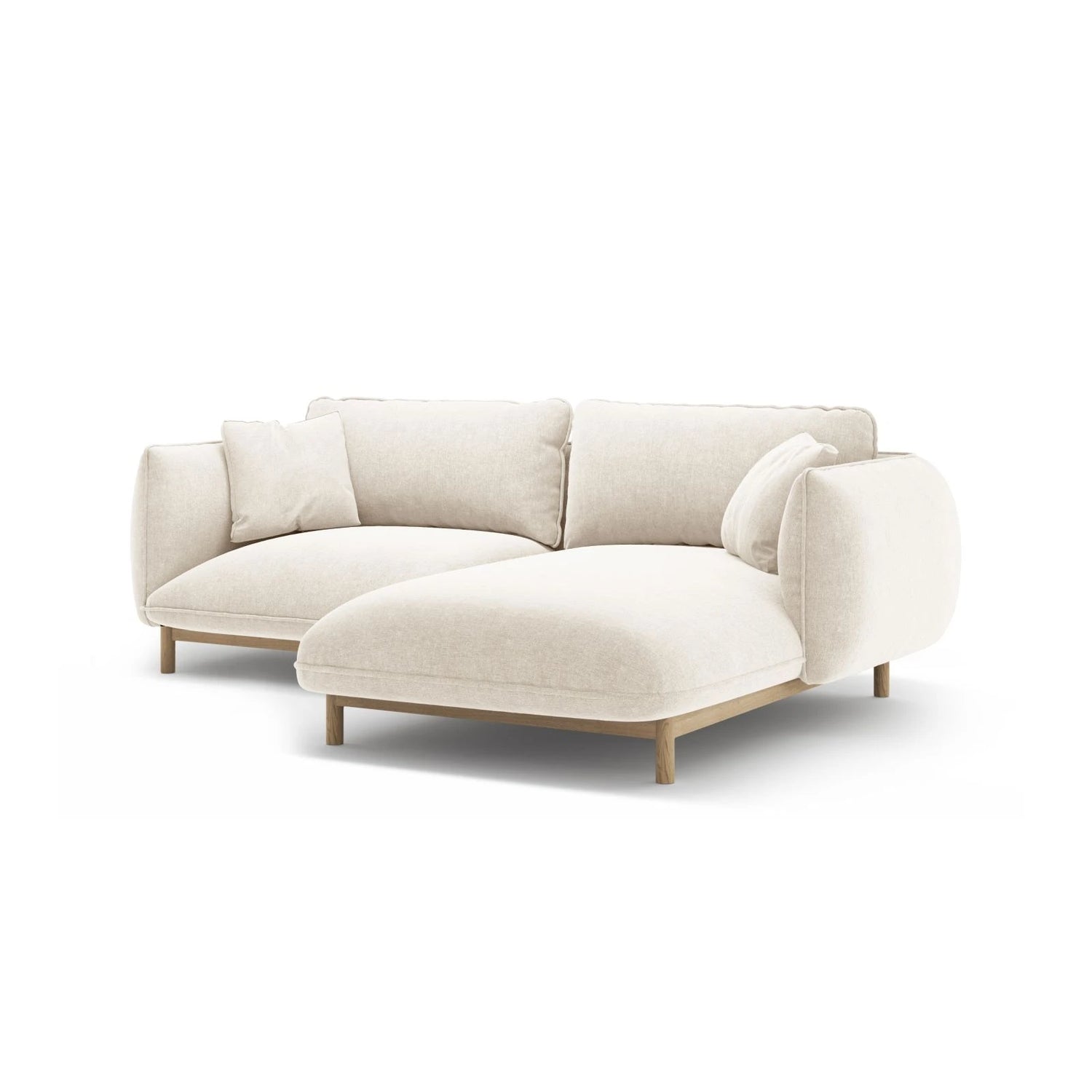 The Ada corner sofa by Micadoni with a chaise longue on the right side combines timeless elegance with inviting comfort. Wood accents and a deep seat add warmth and style to the room.