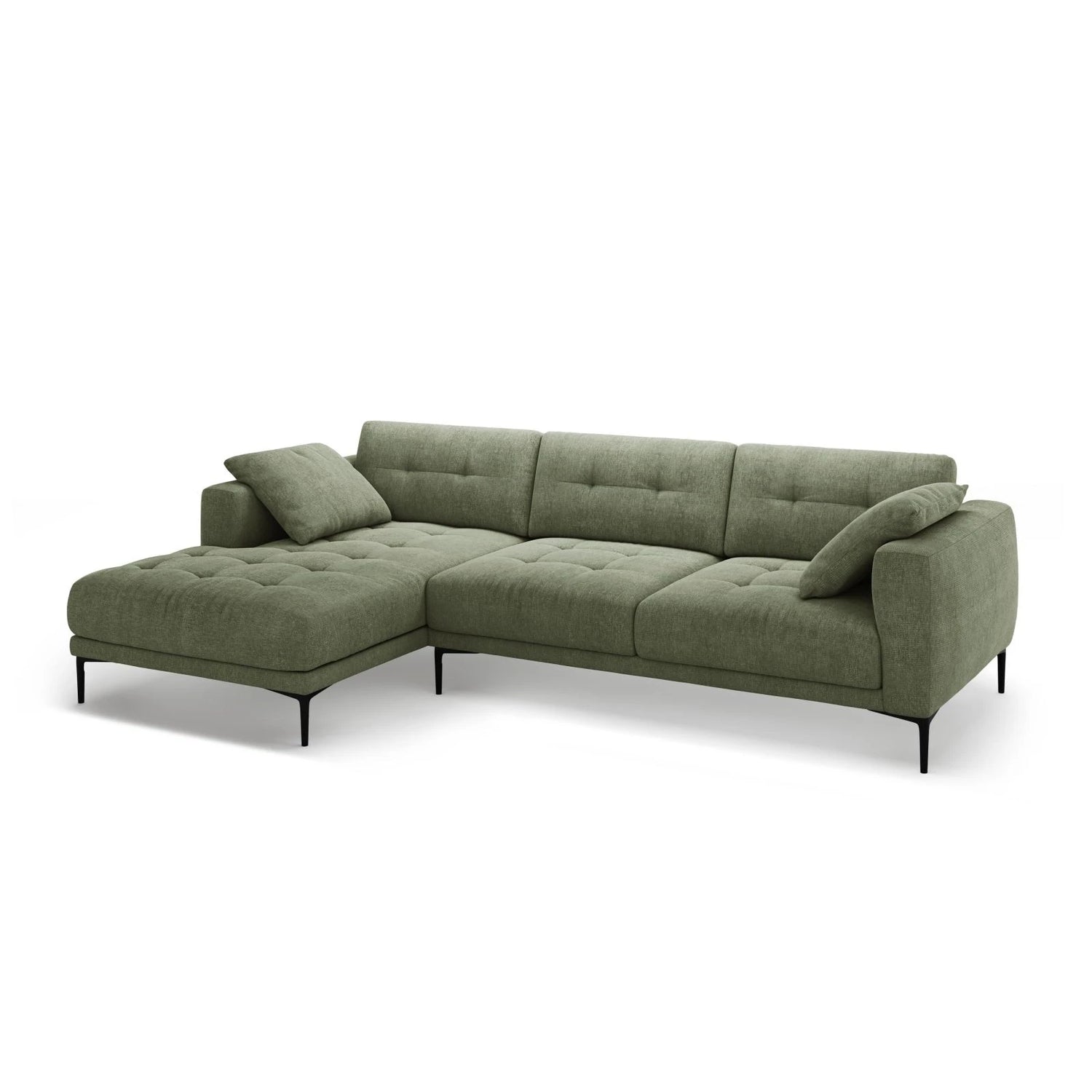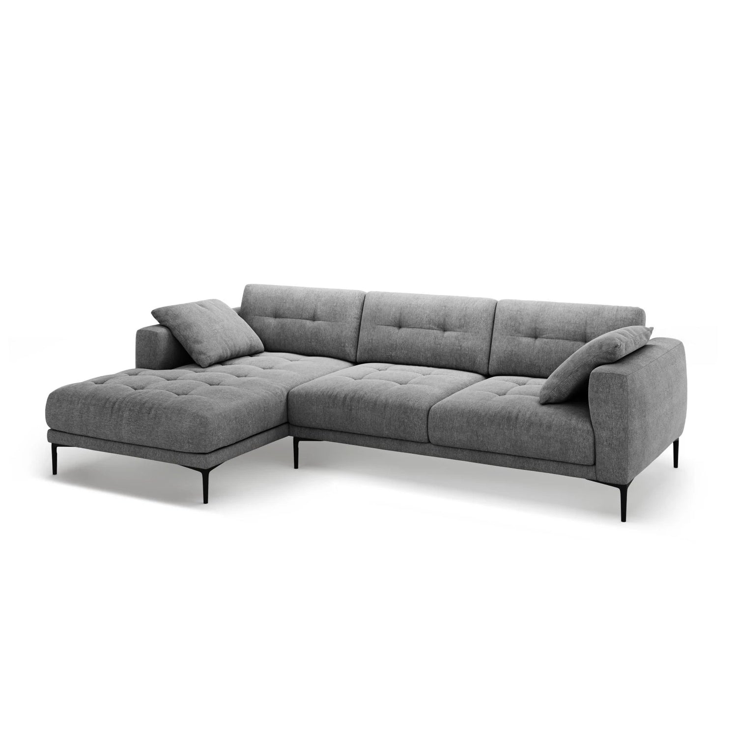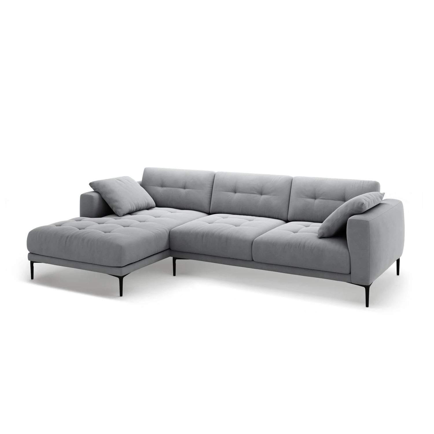 Bemy Left Corner Sofa in Velvet or Textured Fabric, 295x174 cm