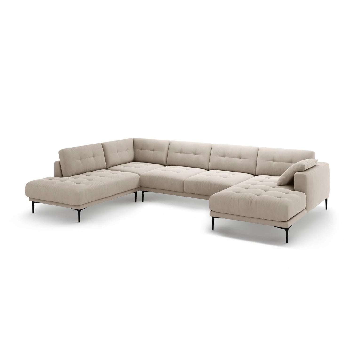 Bemy Panorama Left Corner Sofa in velvet or textured fabric, 373x240 cm - Structured fabric (Sorella 03), beige is backordered and will ship as soon as it is back in stock.