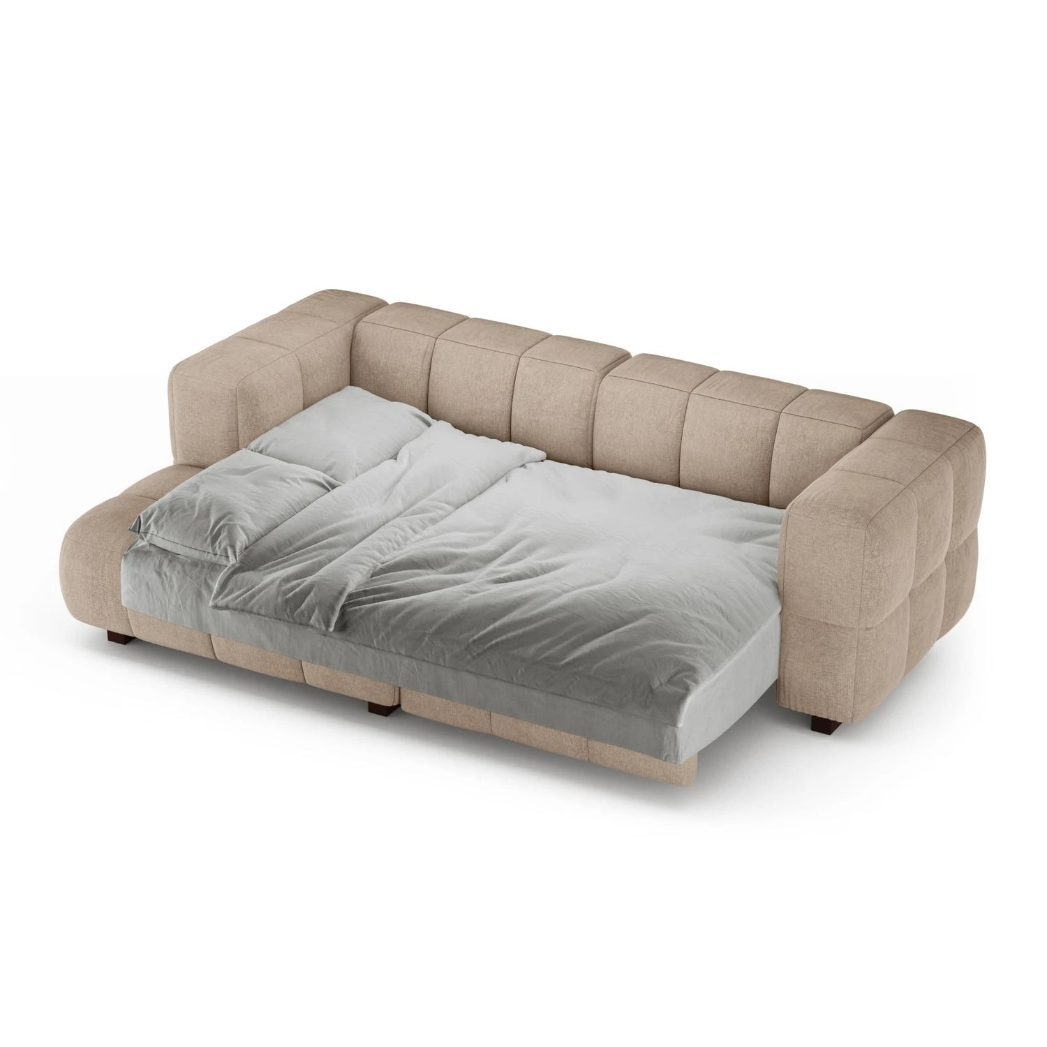 Puma 3-seater corner sofa left with sleeping function, made of velvet or textured fabric, 260x164 cm - Structured fabric (Sorella 05), Sand is backordered and will ship as soon as it is back in stock.