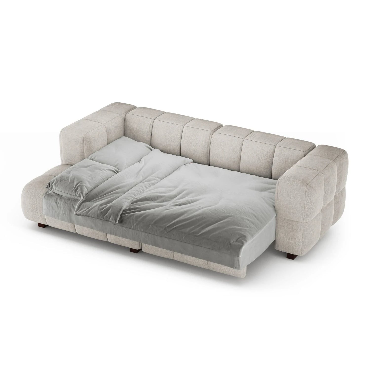 The Puma corner sofa from Micadoni brings space-saving design to your home. Its generous seating area transforms into a bed with a one-step sleep system.