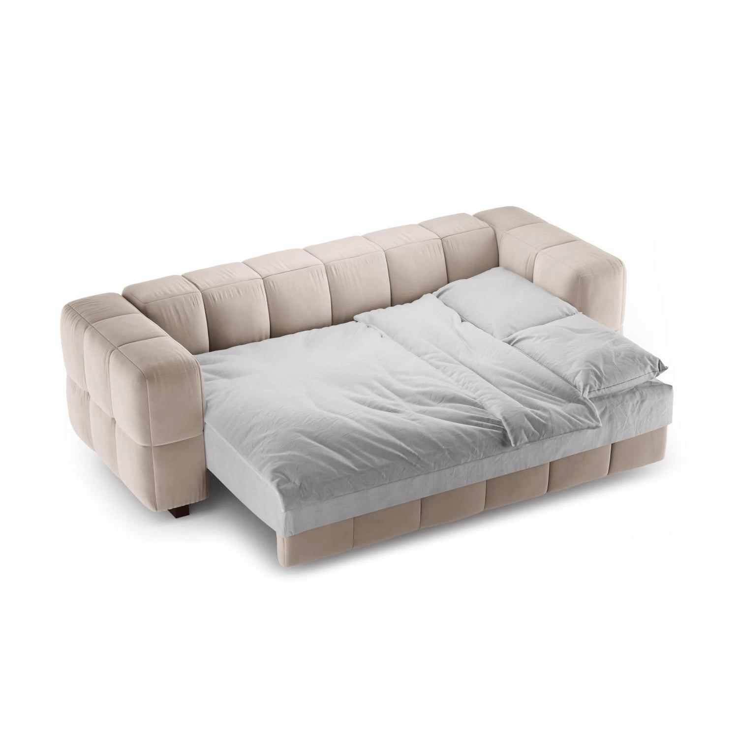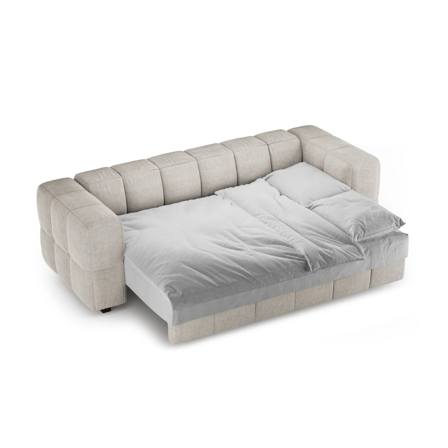 Puma 3-seater sofa with sleeping function in velvet or textured fabric, 260x92 cm - Structured fabric (Sorella 05), Sand is backordered and will ship as soon as it is back in stock.