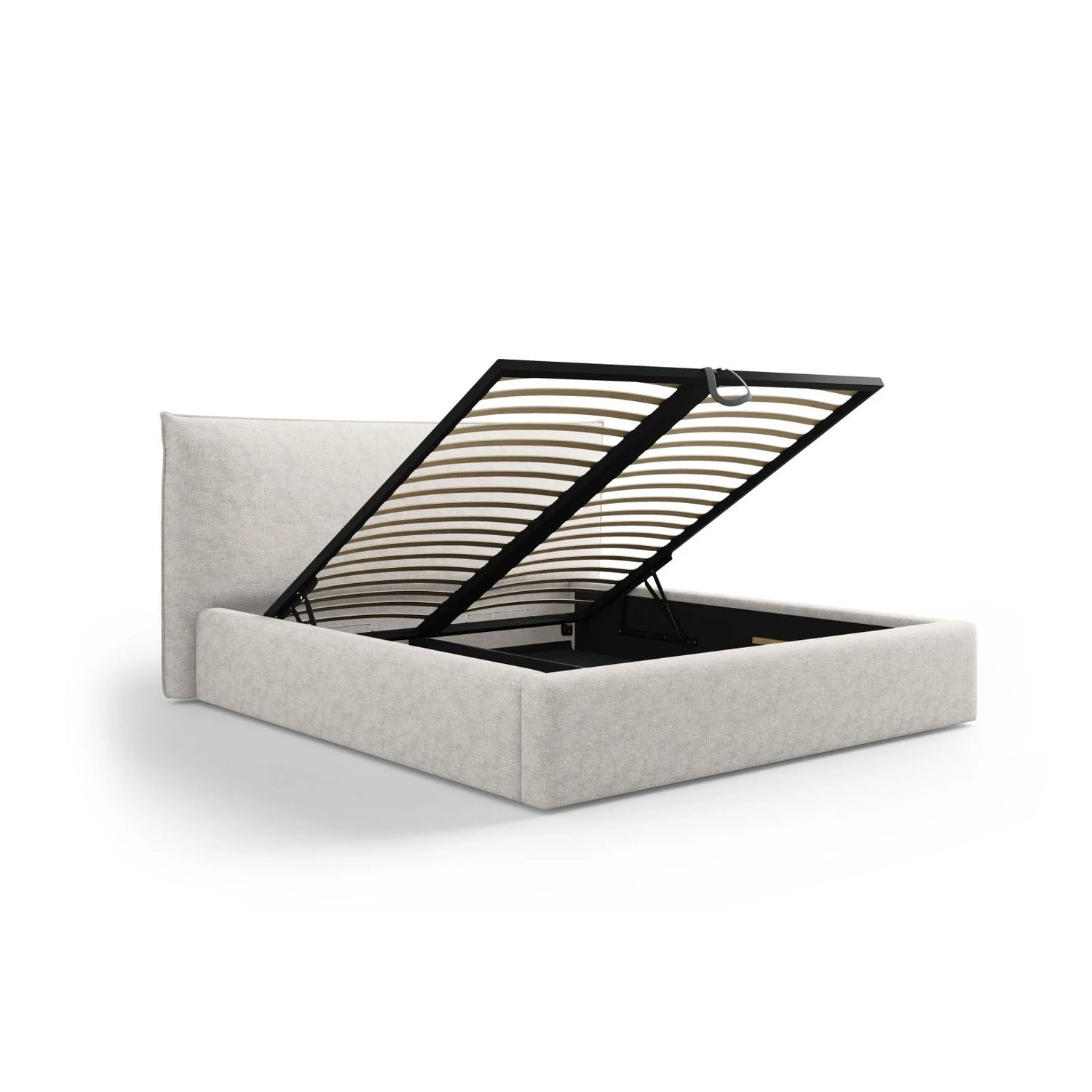 Kaelle bed with storage and headboard in chenille (PeHa02) in light beige, 140x200 cm