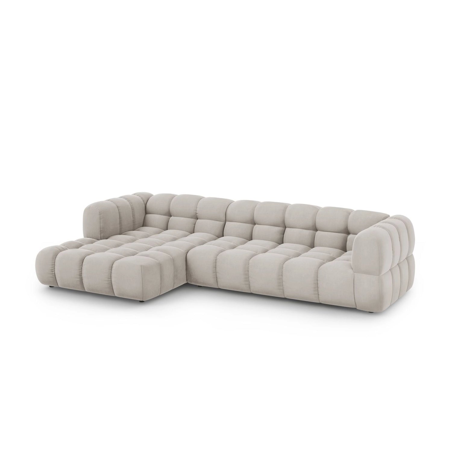 Sky 4-seater corner sofa, left side, in light grey velvet (Casino Ash), 300x162x70 cm