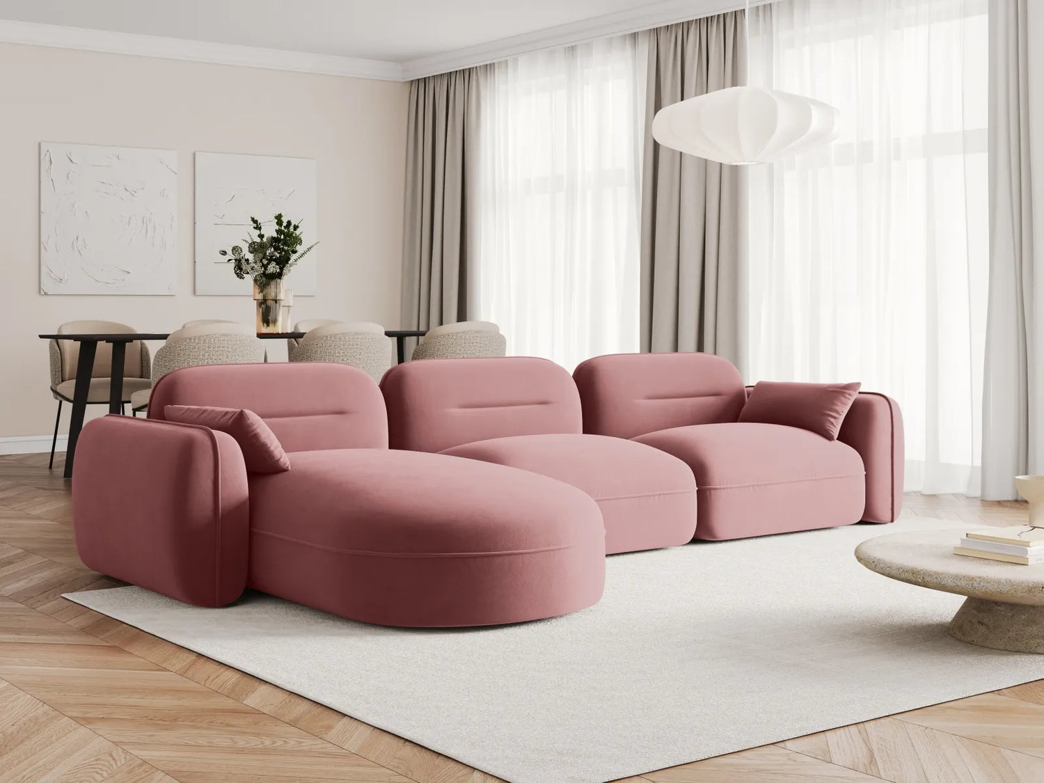 Sydney 4-seater corner sofa, left side, in light grey velvet (Casino Ash), 320x165x70 cm