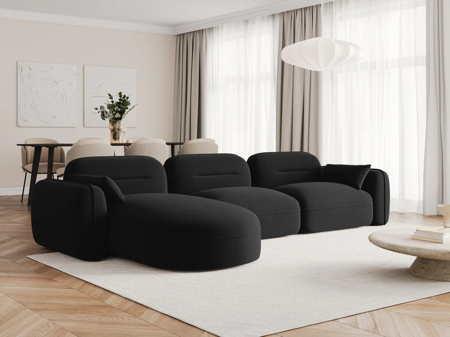 Sydney 4-seater corner sofa, left side, in velvet, 320x165x70 cm - Velvet (Casino Ash), Light Grey // Legs Black Plastic is backordered and will ship as soon as it is back in stock.