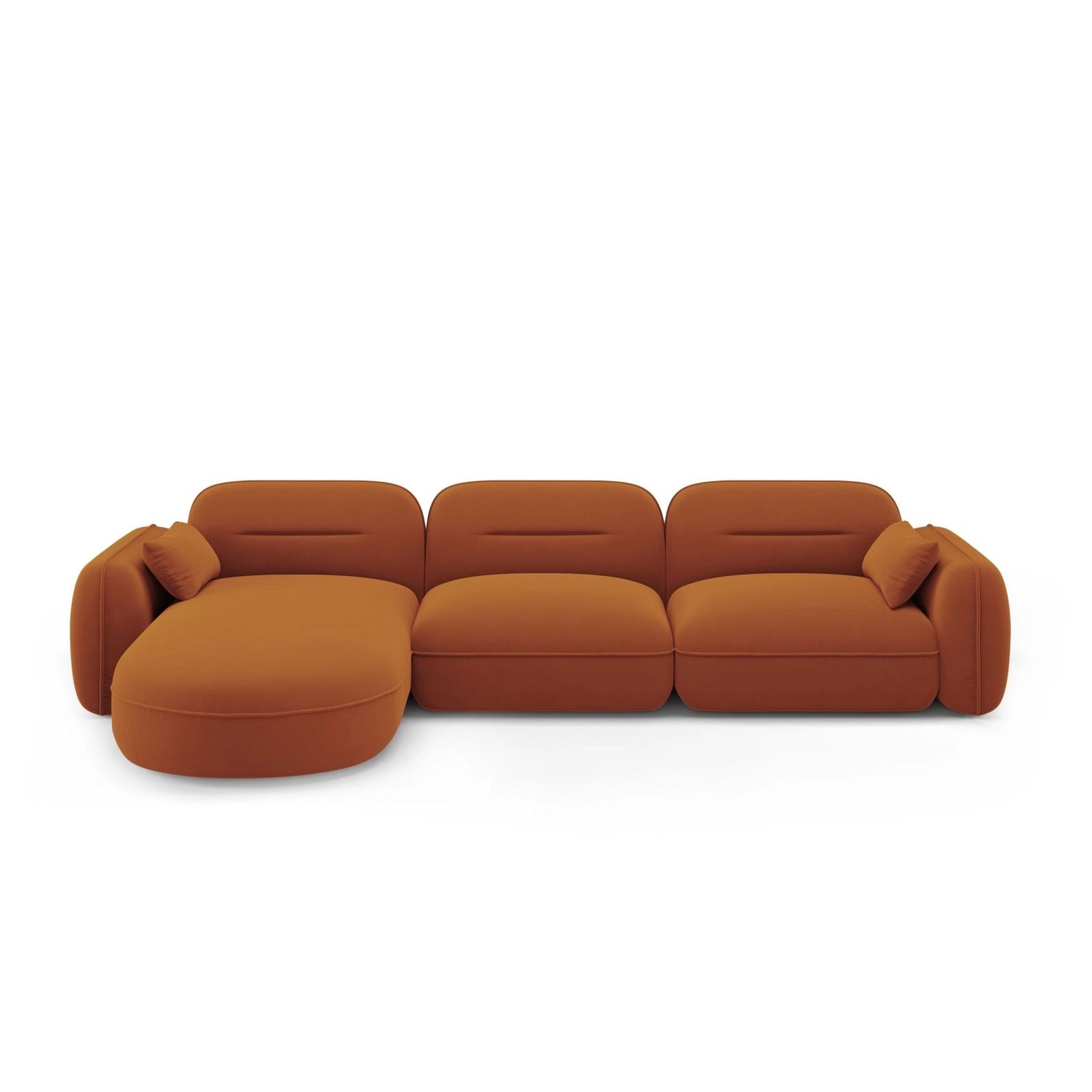 This sofa is ideal for modern living spaces, combining elegant design with functional comfort. Its modular construction allows for flexible use. The armrests are 25 cm wide and 52 cm high, the seat height is 40 cm, the seat depth is 65 cm, and the chaise longue measures 90 cm wide and 140 cm deep.