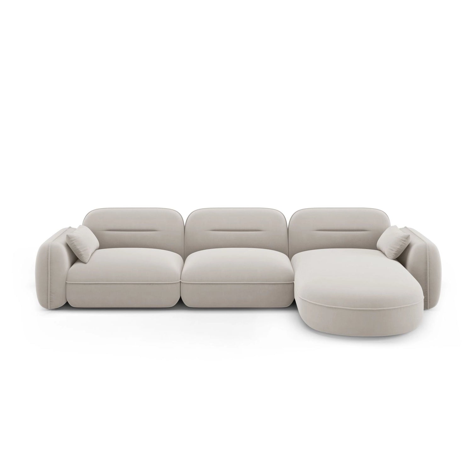 Sydney 4-seater corner sofa, right side, in light grey velvet (Casino Ash), 320x165x70 cm