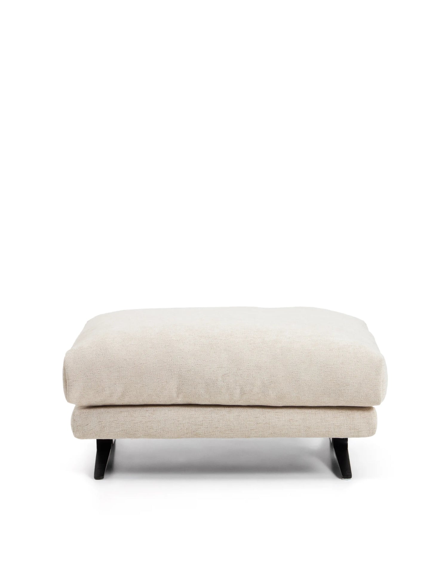 Veliro footrest in beige chenille with black steel legs, 85 x 90 cm, FSC Mix Credit