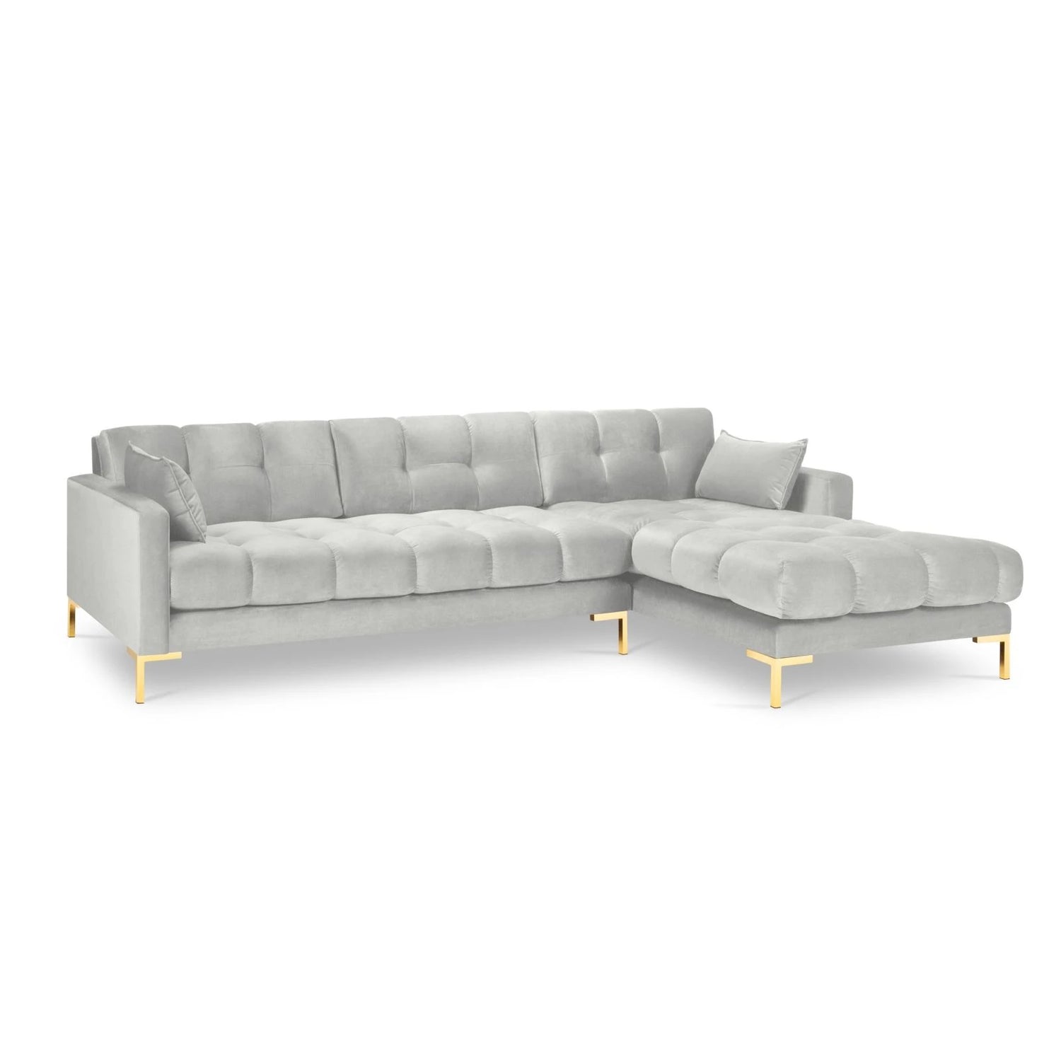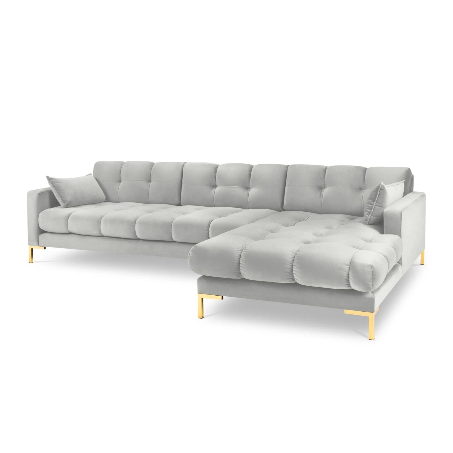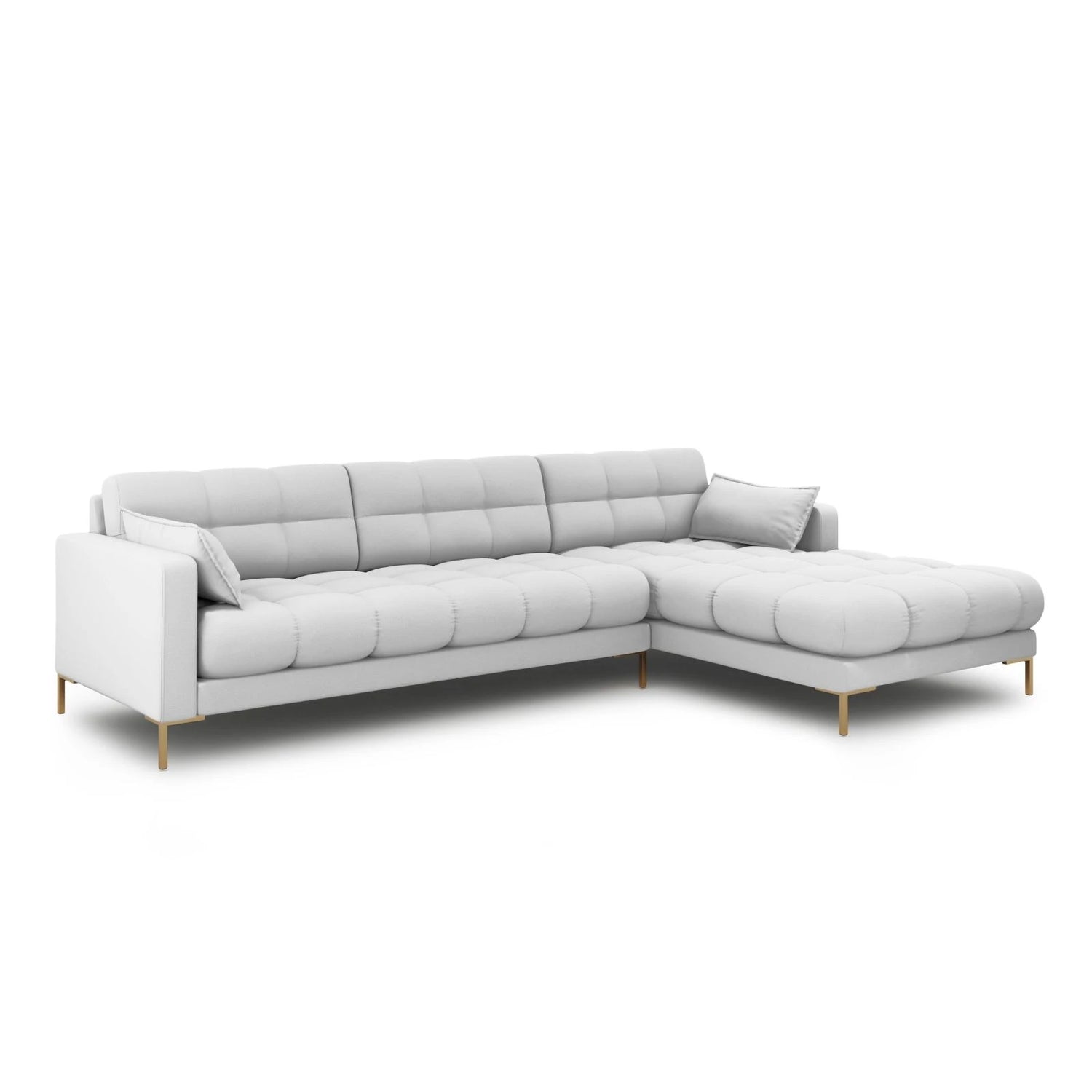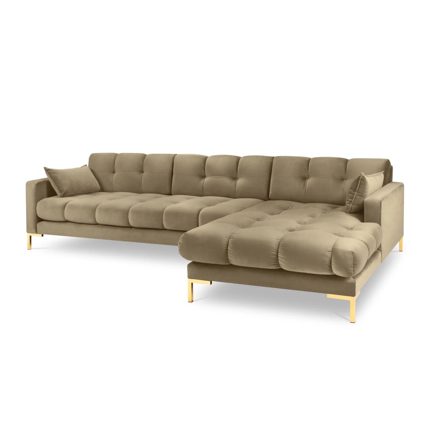 Mamaia 4-seater corner sofa, right side, gold metal legs, with velvet or textured fabric upholstery, 293x185 cm - Textured fabric (Nev02), Light Beige is backordered and will ship as soon as it is back in stock.