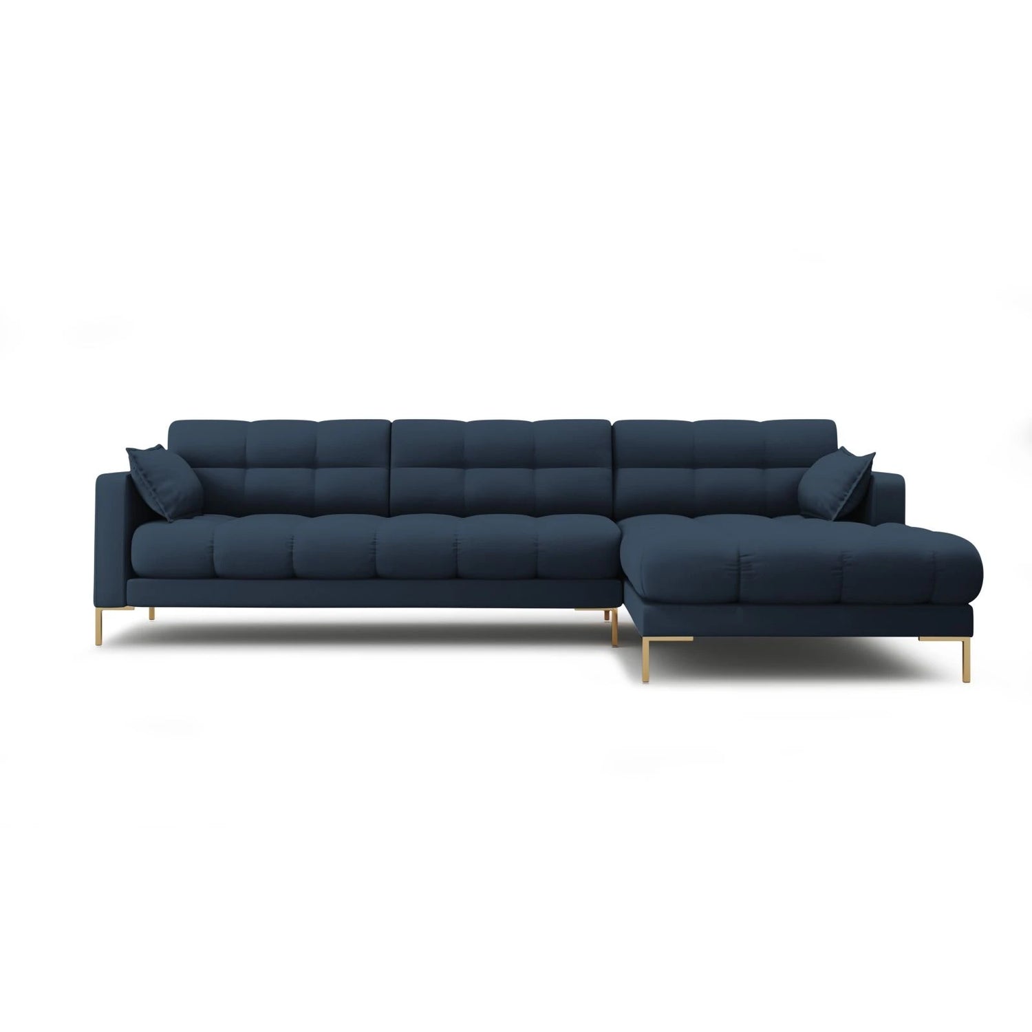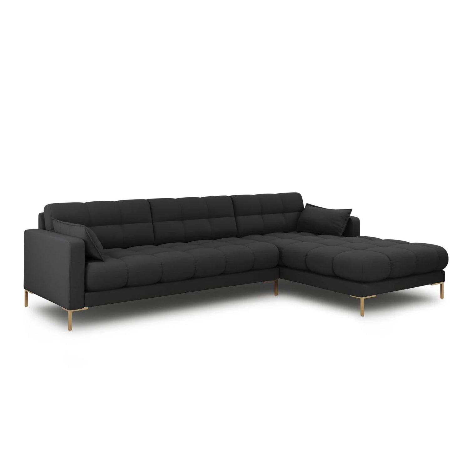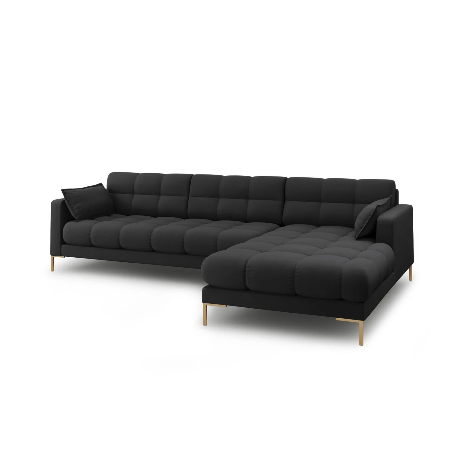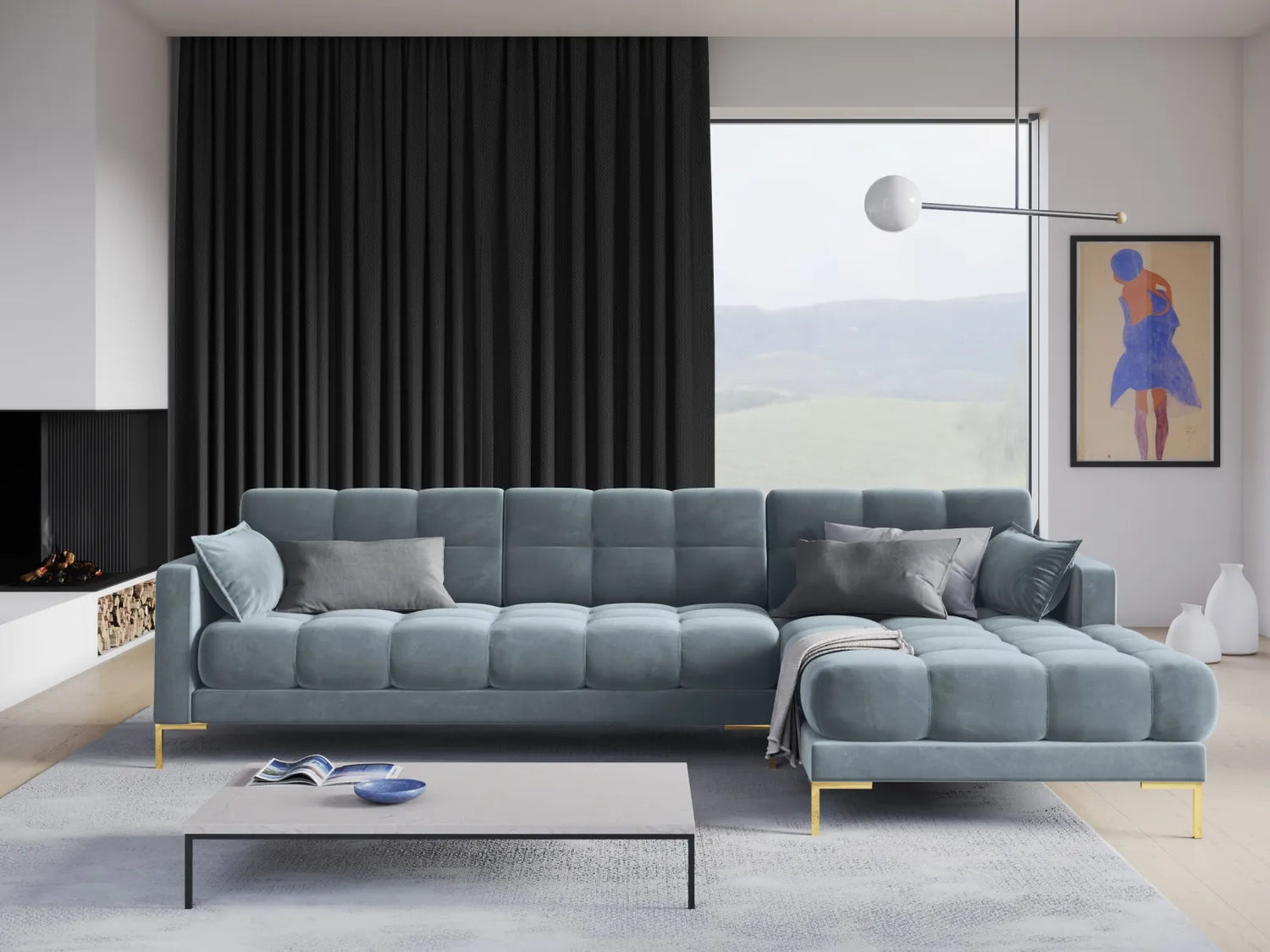 Mamaia 4-seater corner sofa, right side, gold metal legs, with velvet or textured fabric upholstery, 293x185 cm - Textured fabric (Nev02), Light Beige is backordered and will ship as soon as it is back in stock.