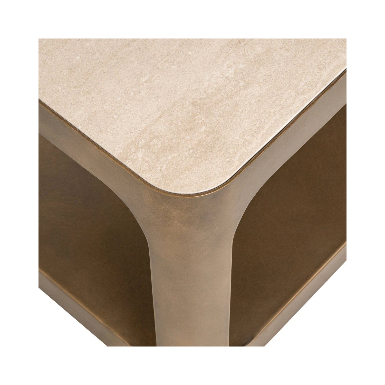 The Claridge TV cabinet offers a flexible design with a reversible top: either black glass or ceramic travertine. It can also be used as a low coffee table.