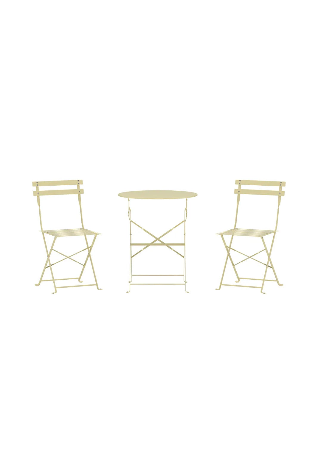 The Tao Café set in light blue consists of a round table and two classic café chairs in a light and stylish design. Made of steel, the table and chairs are foldable, allowing for easy storage and flexible use. The light blue color gives the set a fresh and vibrant look that blends harmoniously into balconies, patios, or gardens. With a tabletop diameter of 60 cm and chairs measuring 46 x 88 x 42 cm, the set offers a practical and elegant solution in a timeless café style, suitable for both small and large outdoor spaces.