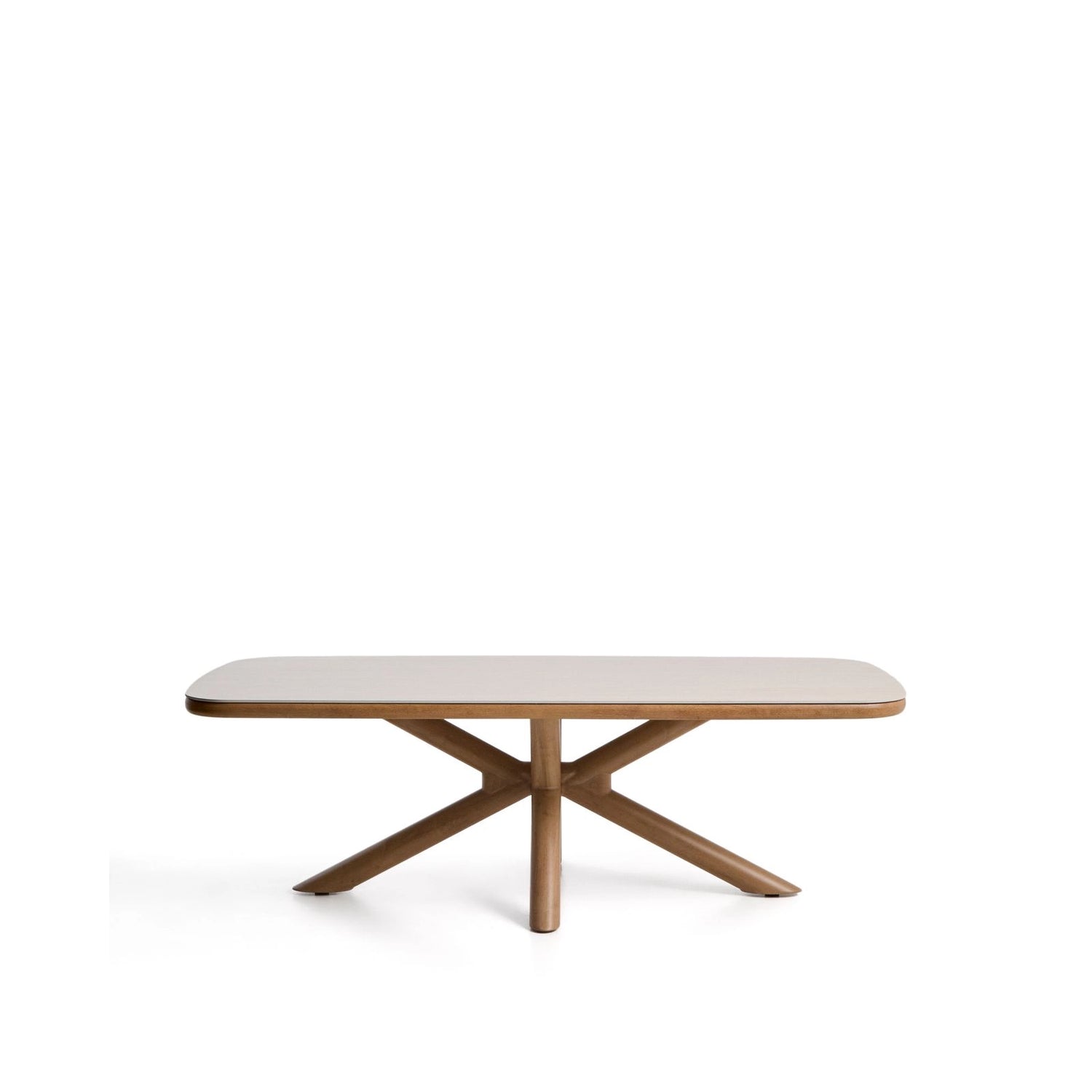 The Mirtia table combines durable materials and warm finishes in a piece of furniture that lets you enjoy spending time outdoors. The sintered stone tabletop is exceptionally long-lasting, has a soft feel, and is waterproof, scratch-resistant, stain-resistant, and resistant to extreme temperatures. The wood-effect aluminum frame provides lightness and stability while retaining the visual warmth of wood. Attention has been paid to every detail, even the plastic protectors on the legs to protect your flooring. Mirtia unites functionality and design in a table that invites you to share moments outdoors.