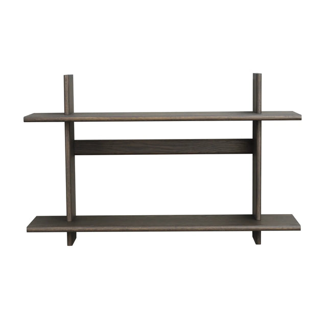 This stylish two-tier wall shelf is more than just storage; it's a striking furnishing element that sets the tone for the room. With its simple yet sophisticated design in brown oak and oak veneer, the shelf creates a warm and modern feel, perfect for the style-conscious home.