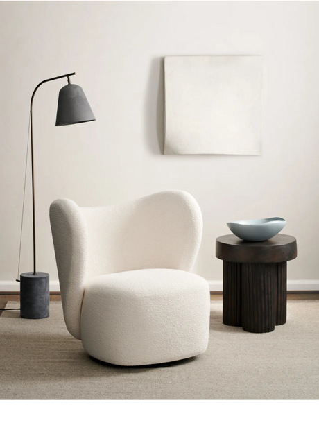 Nema armchair in taupe bouclé and solid ash wood with natural finish FSC 100%