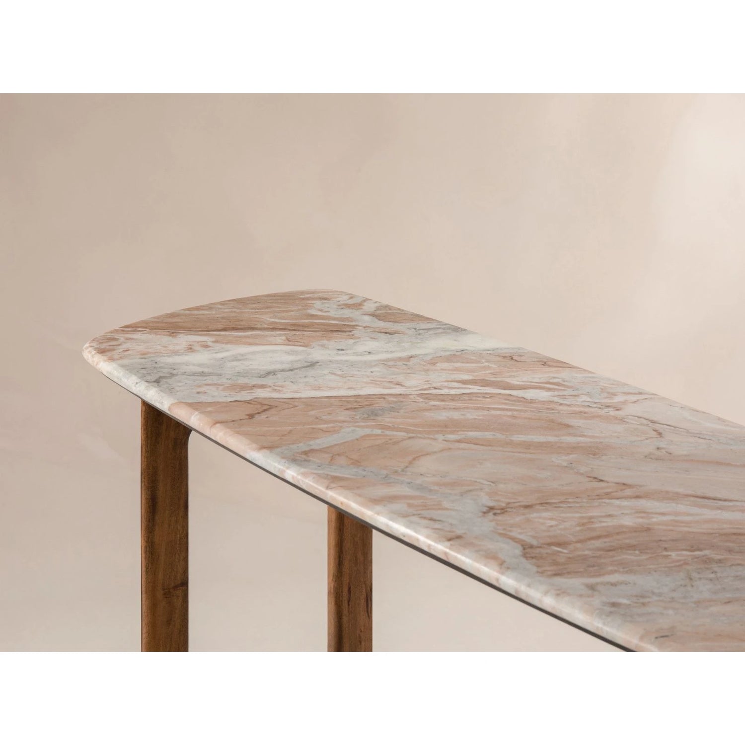 Bia console table made of acacia wood with light brown marble top, 120x45x76 cm