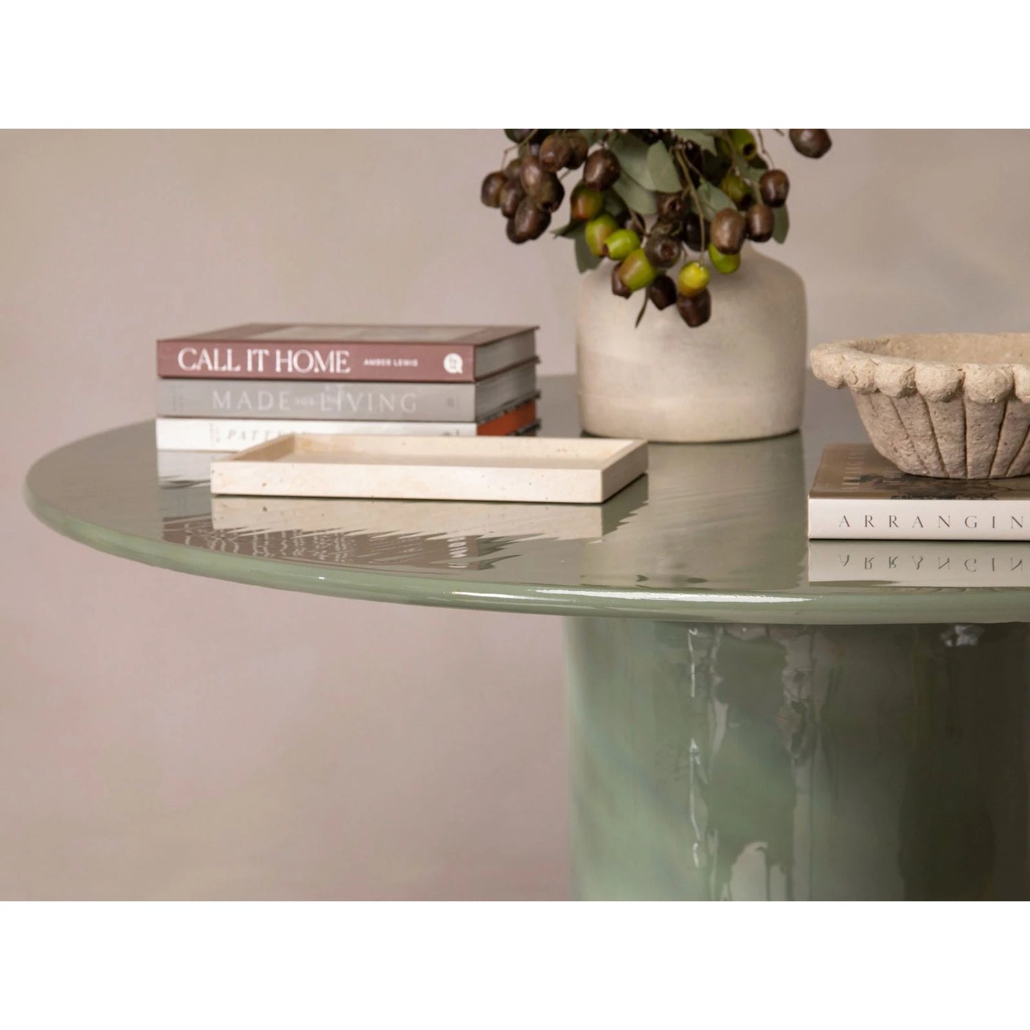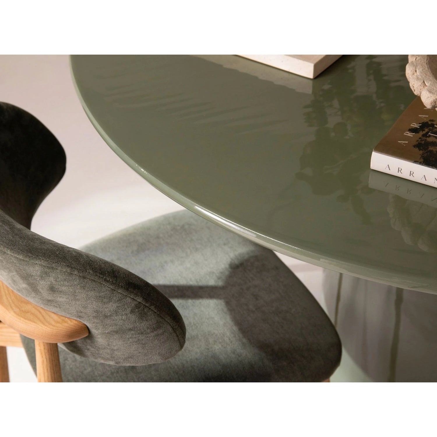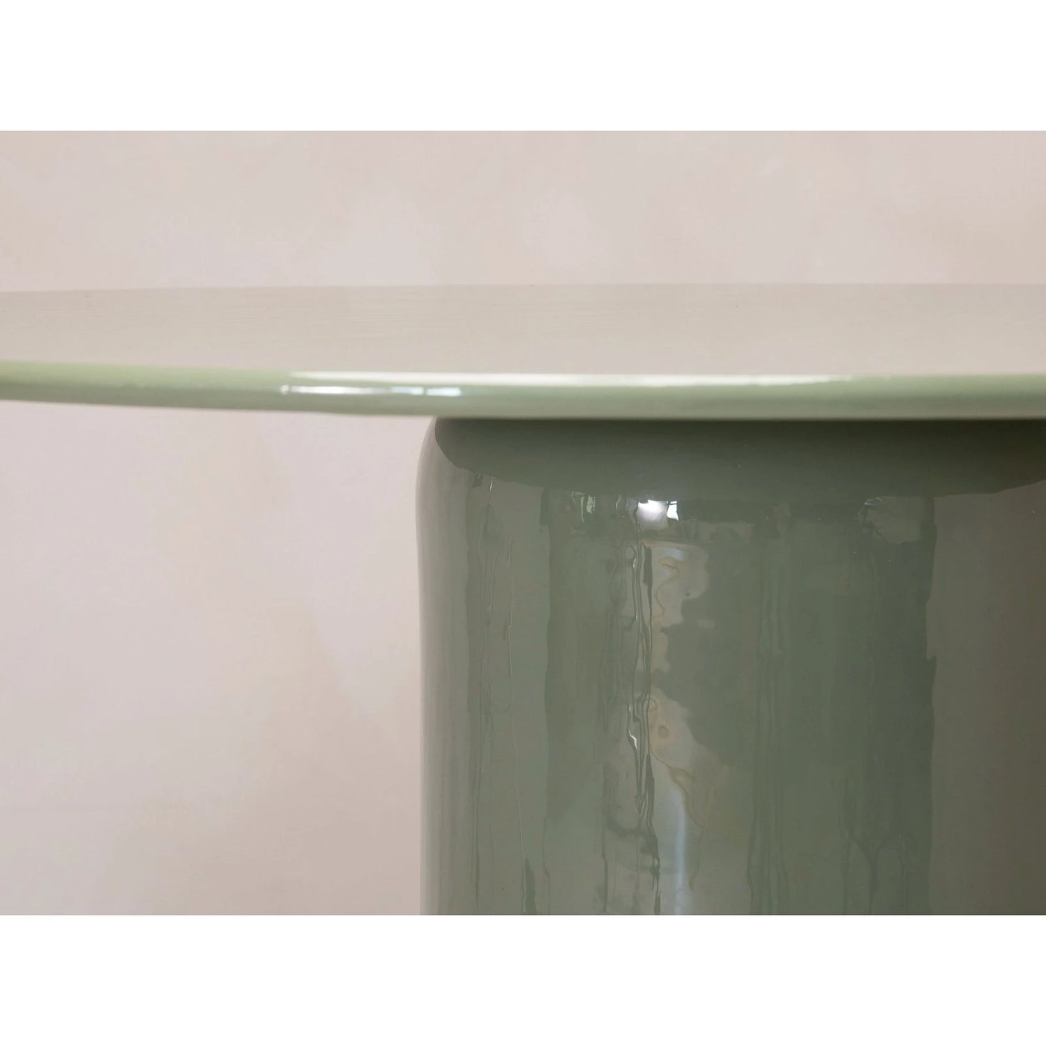 The Clementin dining table features a modern cylindrical frame, a high-gloss finish, and a sturdy metal construction. The perfect accent piece for your dining room.