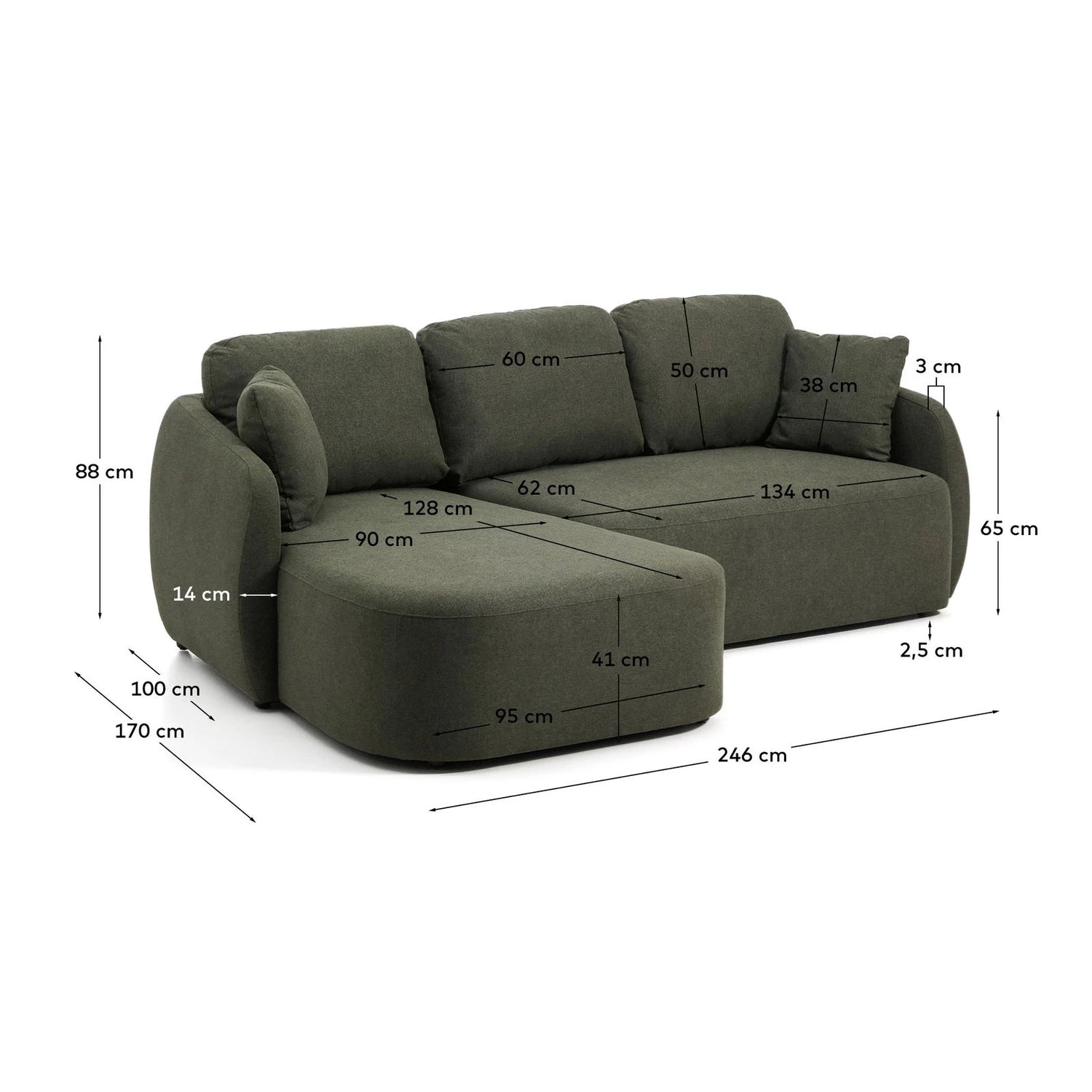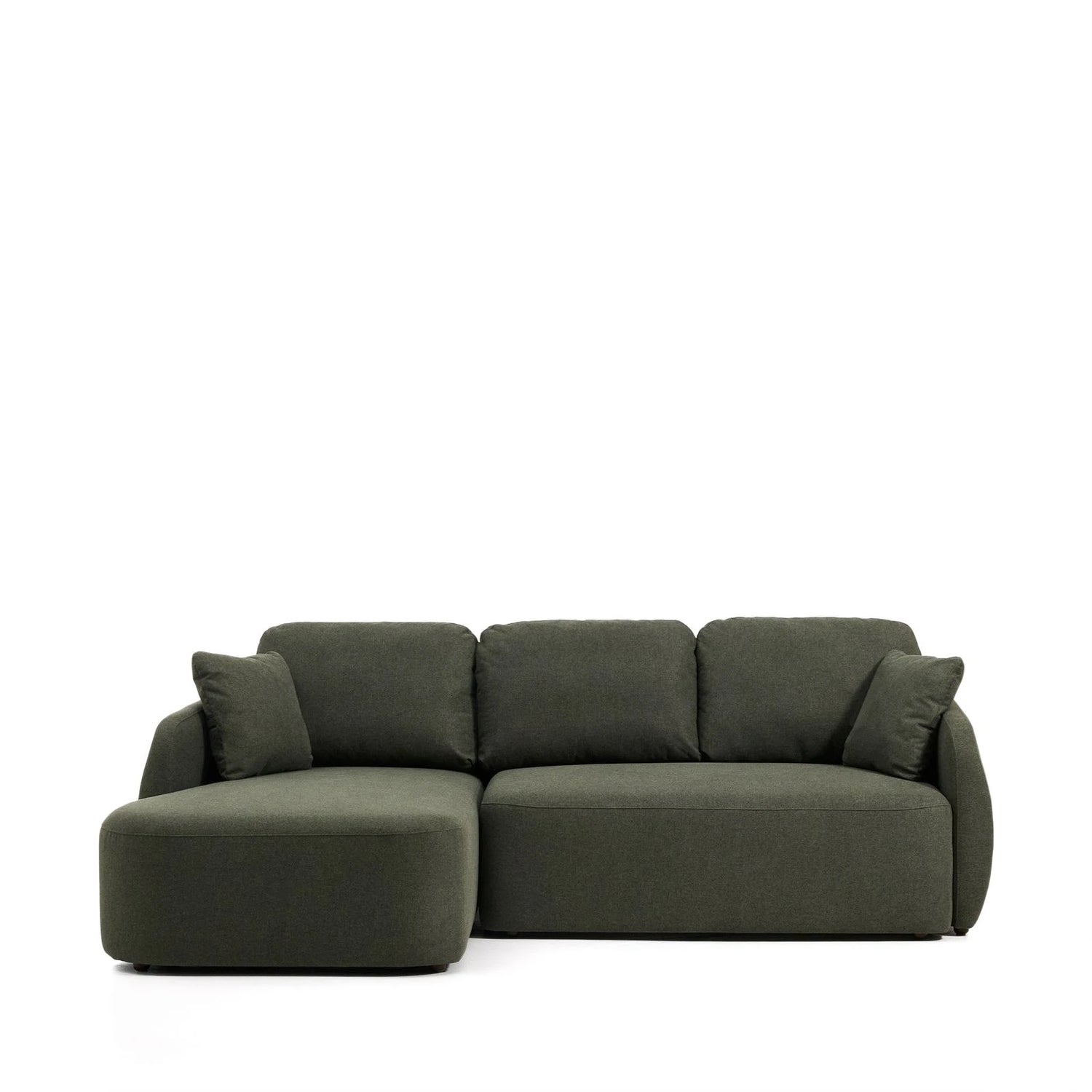 Laira 3-seater sofa bed in dark green chenille with chaise longue on the left, 246 cm, FSC Mix Credit