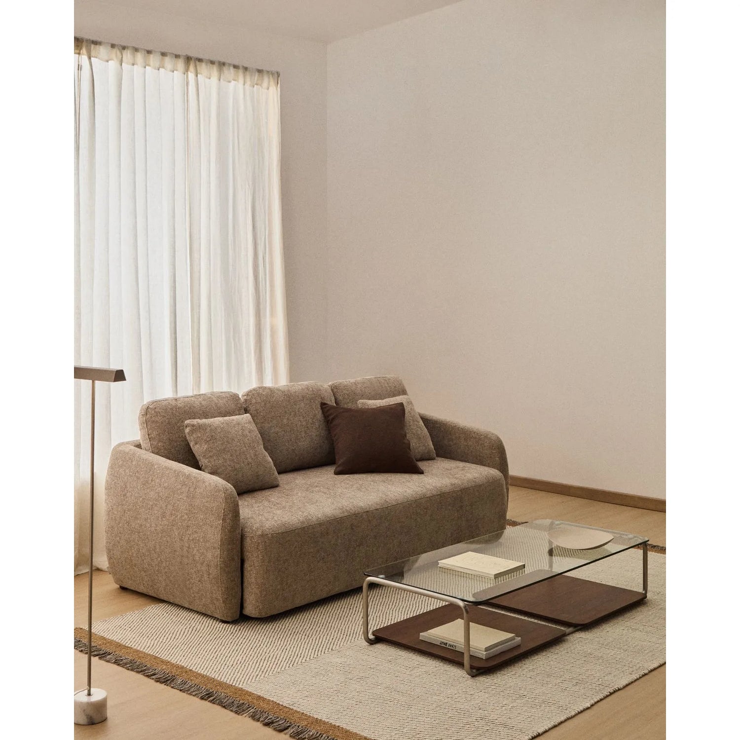 Laira 3-seater sofa bed in taupe chenille, 218 cm, FSC Mix Credit
