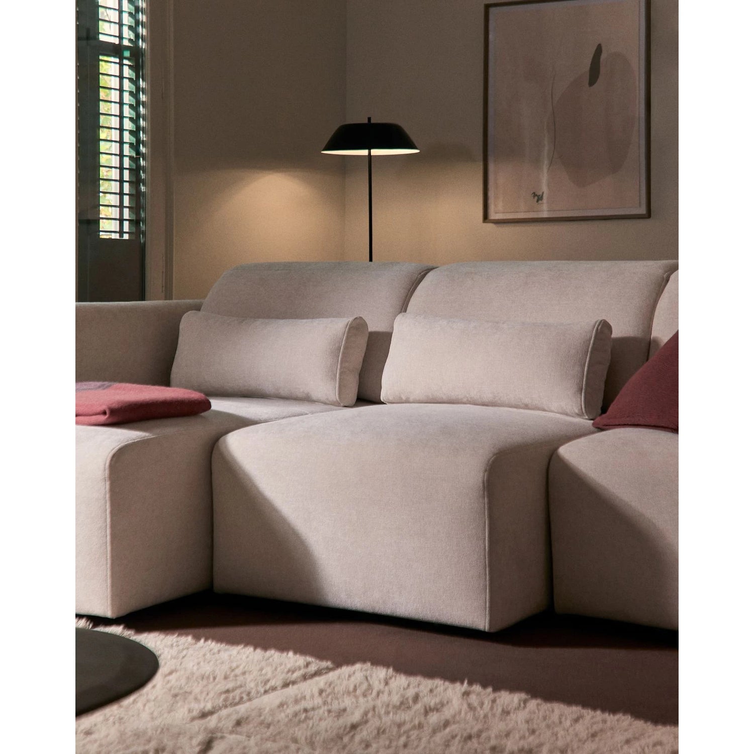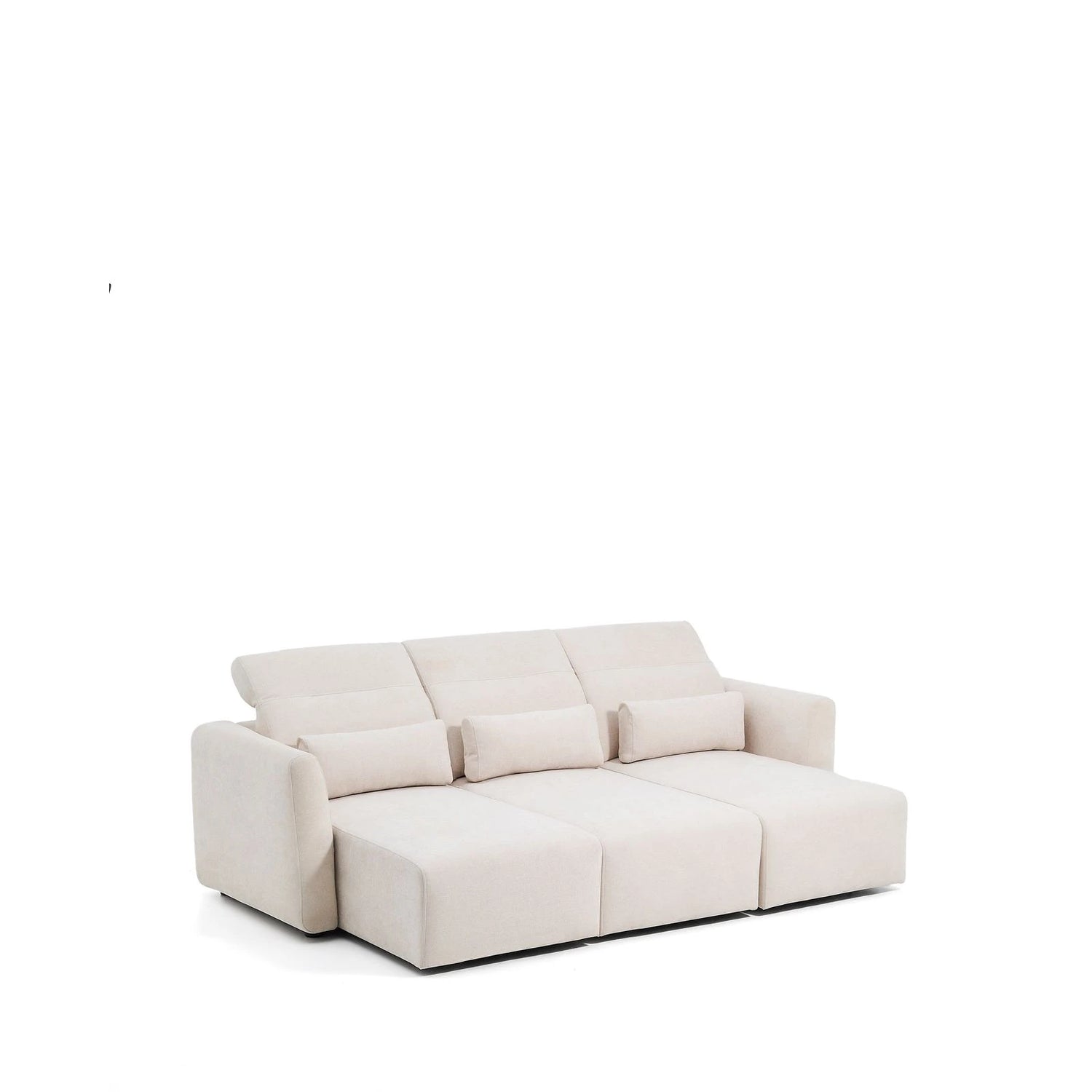 Lares 3-seater sofa with electrically extendable seats and adjustable headrest in beige chenille, 255 cm
