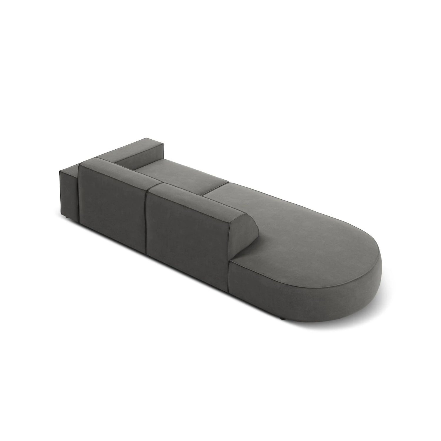 Jodie 3-seater sofa, open on the left side, round, in velvet (Blu22) in light beige, 262x102 cm