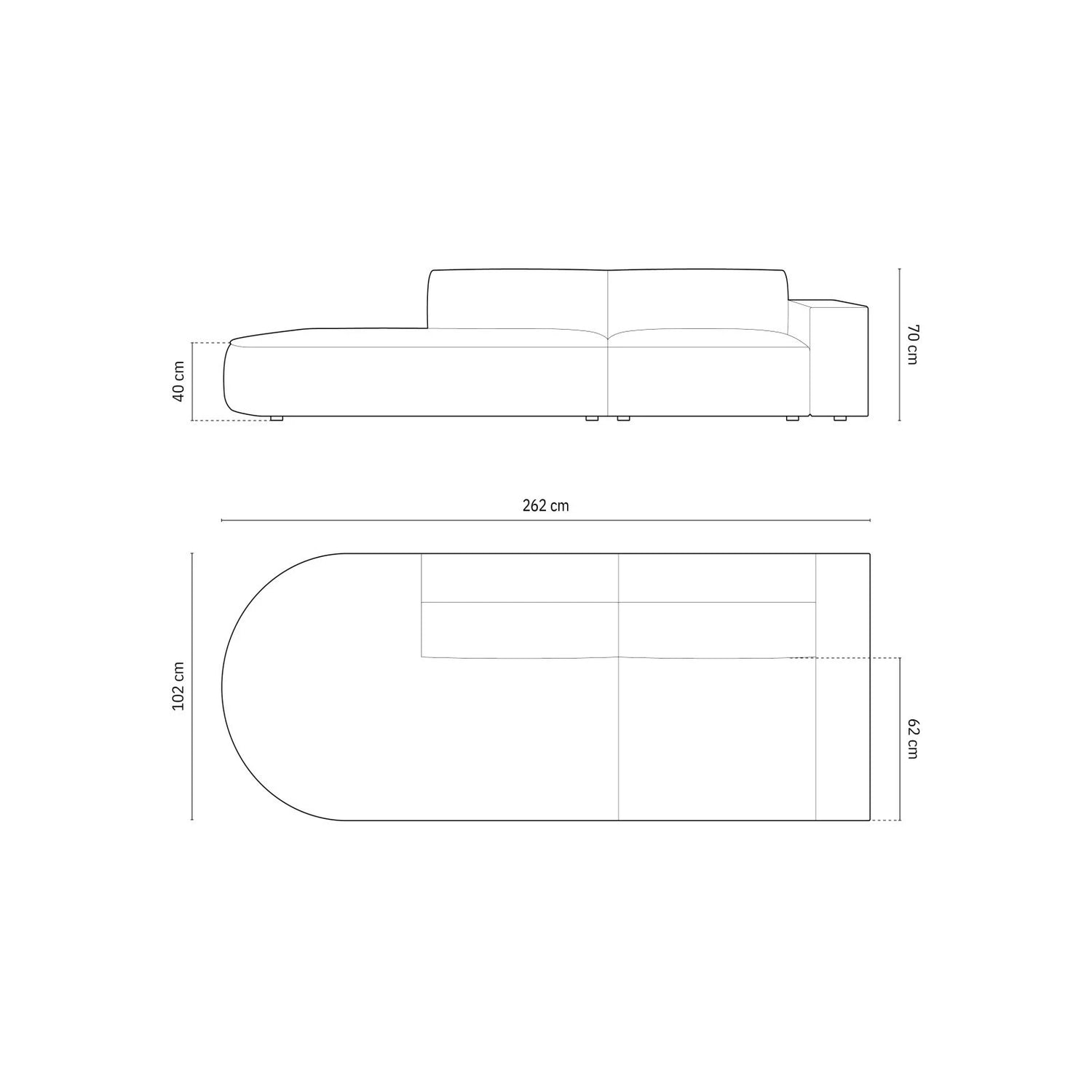 Jodie 3-seater sofa, open on the left side, round, in velvet or textured fabric, 262x102 cm - Velvet (Blu22), Light Beige is backordered and will ship as soon as it is back in stock.