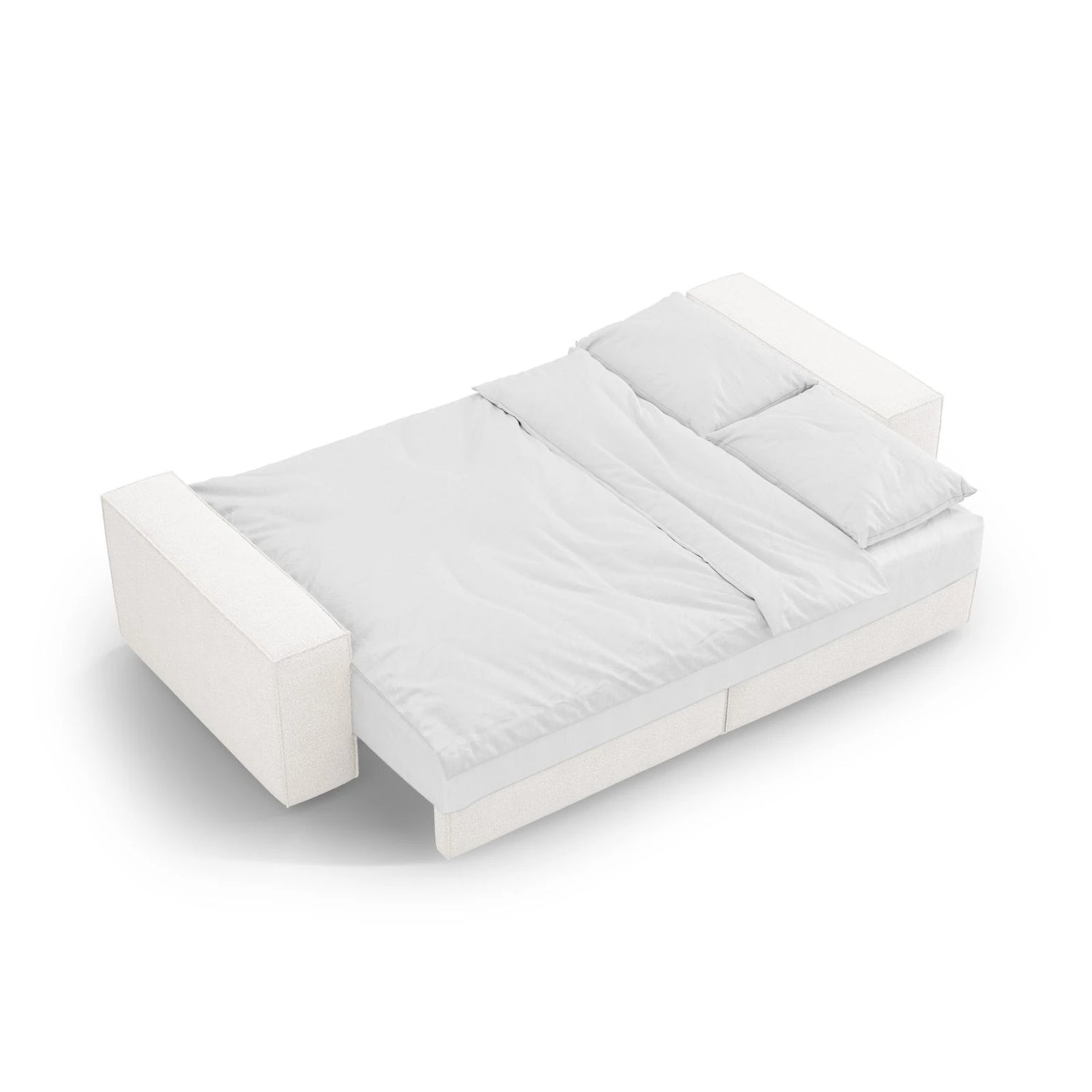 Jodie 3-seater sofa with sleeping function and storage compartment, fold-out, in velvet, boucle or textured fabric, 247x107 cm - Boucle (Bal2073), White is backordered and will ship as soon as it is back in stock.