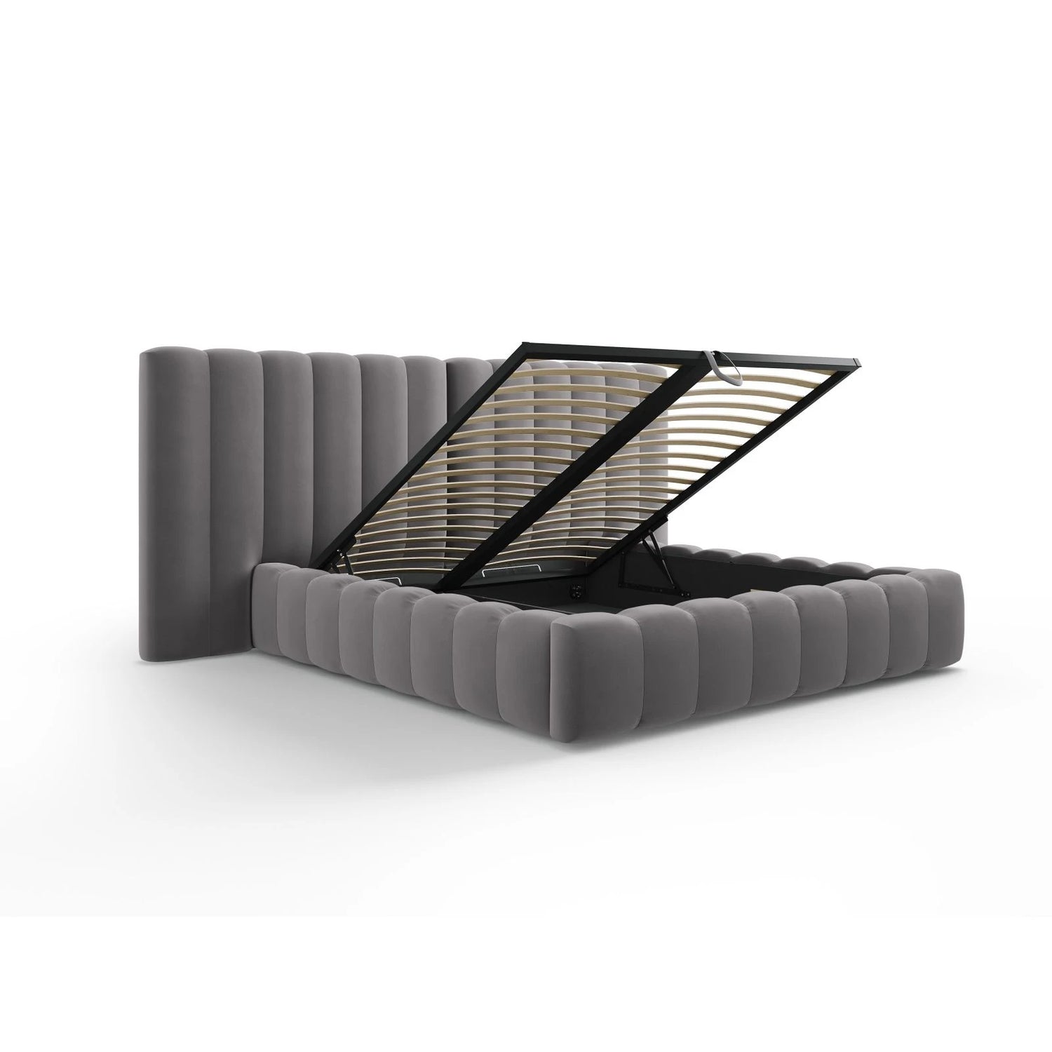 Kelp bed with storage and double headboard in velvet or textured fabric, 140x200 cm - Textured fabric (Mol04), Grey Beige Melange is backordered and will ship as soon as it is back in stock.
