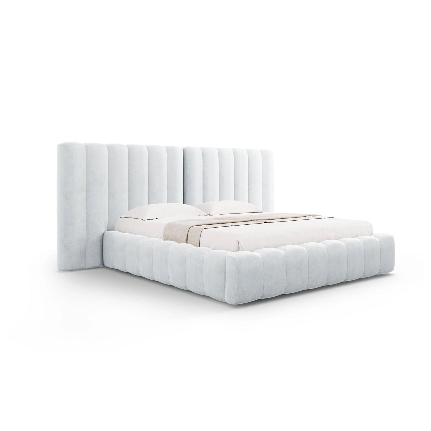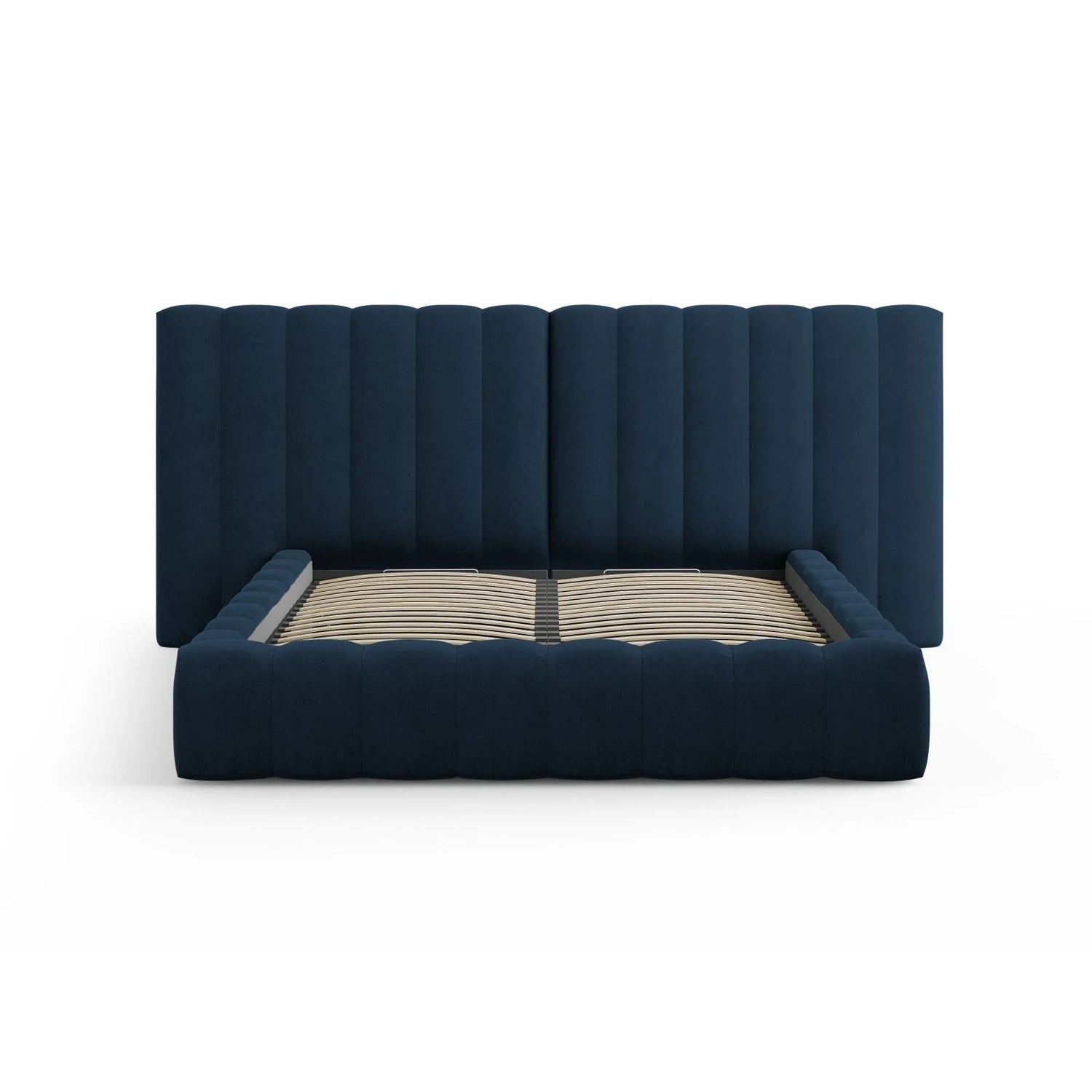 Discover luxurious relaxation on the Micadoni Kelp bed with a double headboard and storage space, designed for 140x200cm mattresses. Elegance and functionality combined. Our Kelp bed is distinguished by its shape and spectacular stitching. It encloses a soft bed frame that forms a cohesive set with the headboard. This allows you to maintain a consistent style and is also highly practical. This bed design creates a cozy atmosphere in the bedroom, making sleep a dream. The headboard is exceptionally comfortable for your back thanks to its soft foam and pleasant-to-the-touch fabric. Its upper edge has a gently undulating contour, defined by vertical stitching. The bed is highly functional due to the large storage compartment, perfect for bedding and textiles. It is available in several standard sizes to fit any mattress from our collection (mattresses sold separately). The Kelp model will meet your expectations if you like furniture that stands out due to its artistic shape and you are looking for comfortable furniture for sleeping. Box: Gas lift bed box with front opening Depending on the size of the product, the number of stitches on the headboard may vary. Metal frame with elastic slats.