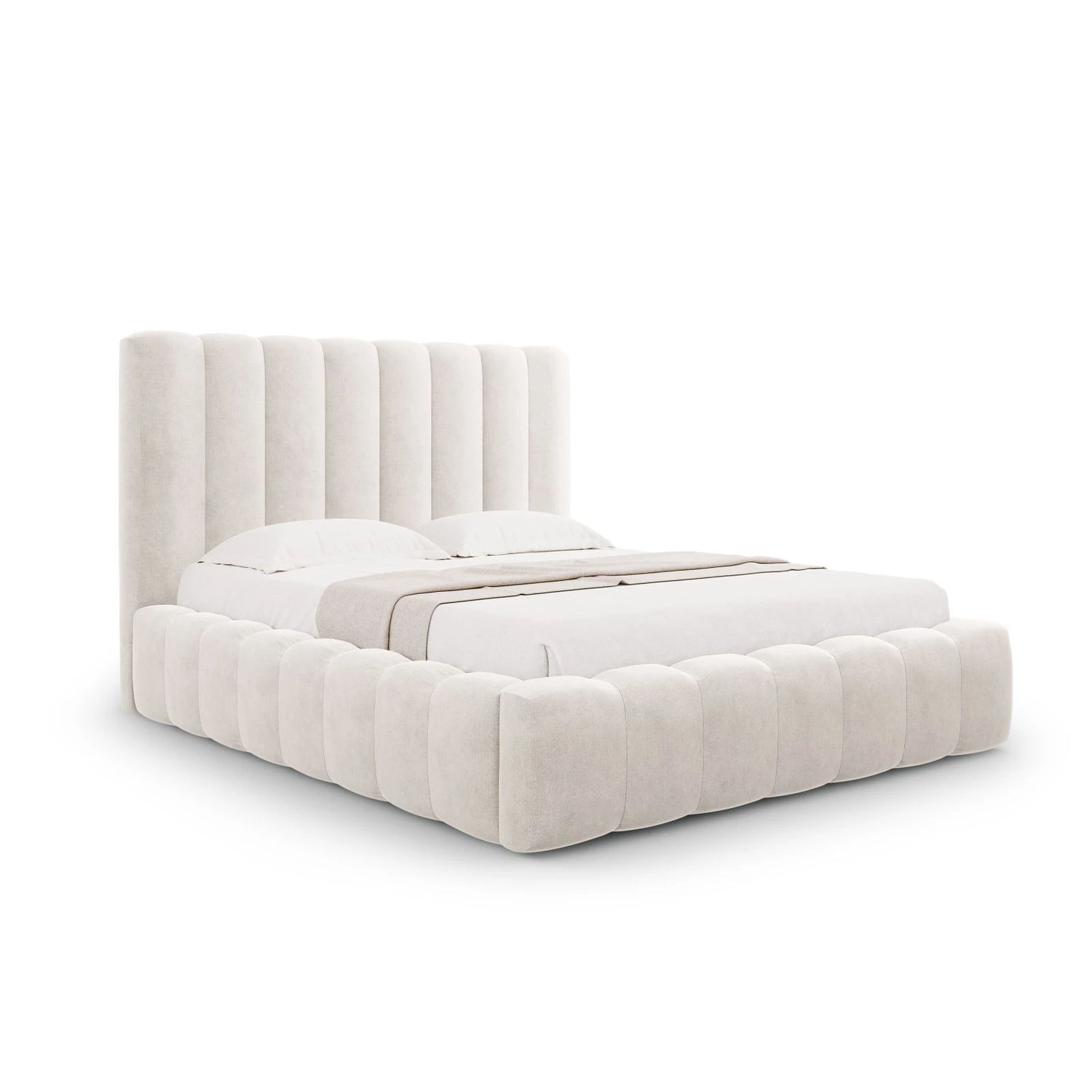 Kelp bed with storage and headboard in velvet or textured fabric, 160x200 cm - Textured fabric (Mol04), Grey Beige Melange is backordered and will ship as soon as it is back in stock.