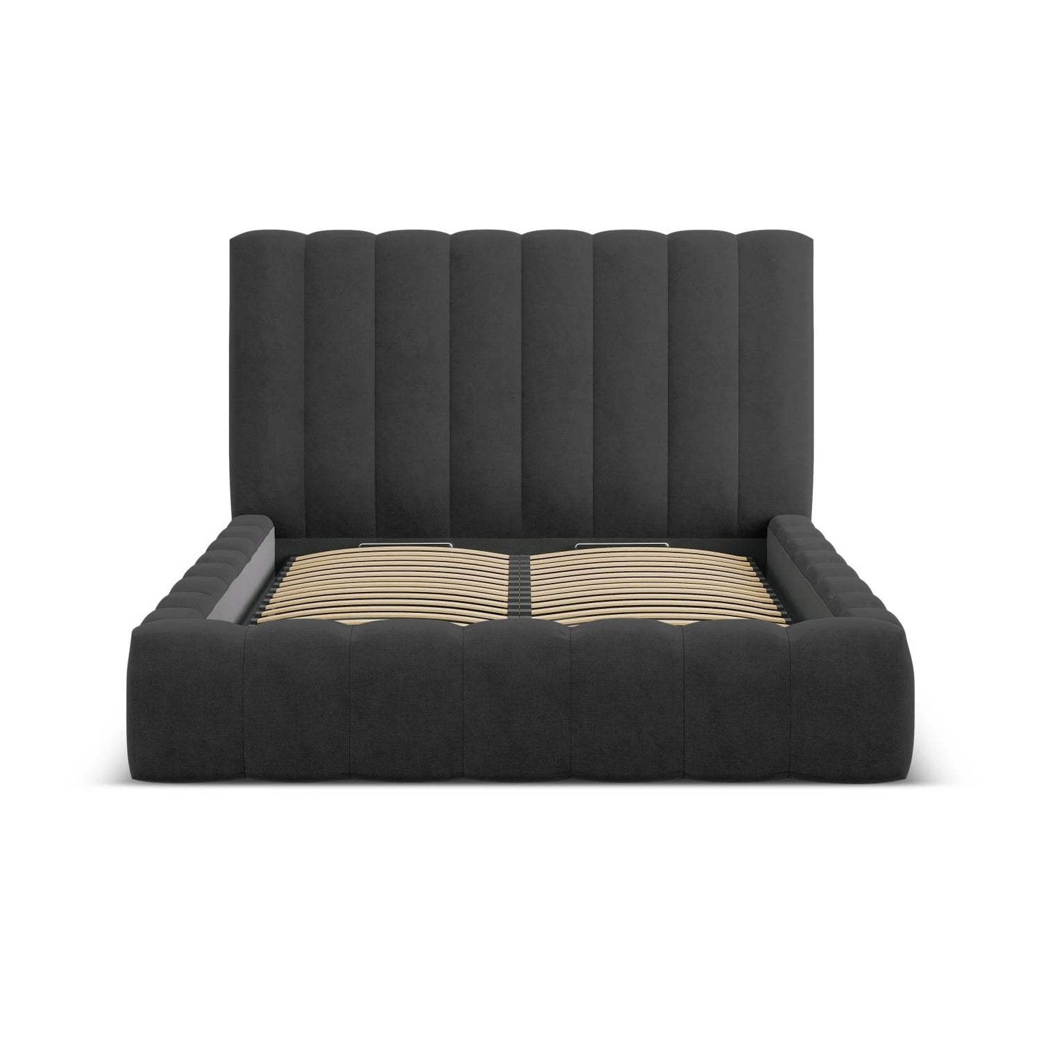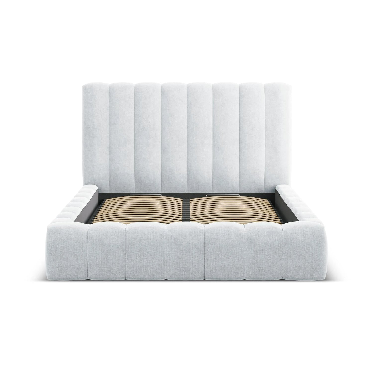 Looking to decorate your bedroom? Check out the practical and beautiful Kelp bed from Micadoni, designed for 160x200cm mattresses. Store bedding in the spacious box and lean back comfortably against the headboard. Our Kelp bed is distinguished by its shape and striking seams. It encases a soft storage box that forms a cohesive set with the headboard. This allows you to maintain a consistent style and is also incredibly practical. This bed design creates a cozy atmosphere in the bedroom, making sleep a dream. The headboard is exceptionally comfortable for your back thanks to its soft foam and pleasant-to-the-touch fabric. Its upper edge features a gently wavy contour accentuated by vertical seams. The bed is highly functional due to the large storage box, perfect for keeping linens and textiles organized. It is available in several standard sizes to fit any mattress from our collection (mattresses sold separately). The Kelp model will meet your expectations if you like furniture that stands out due to its artistic shape and you are looking for comfortable furniture for sleeping. Box: Gas lift bed box with front opening Depending on the size of the product, the number of stitches on the headboard may vary. Metal frame with elastic slats.