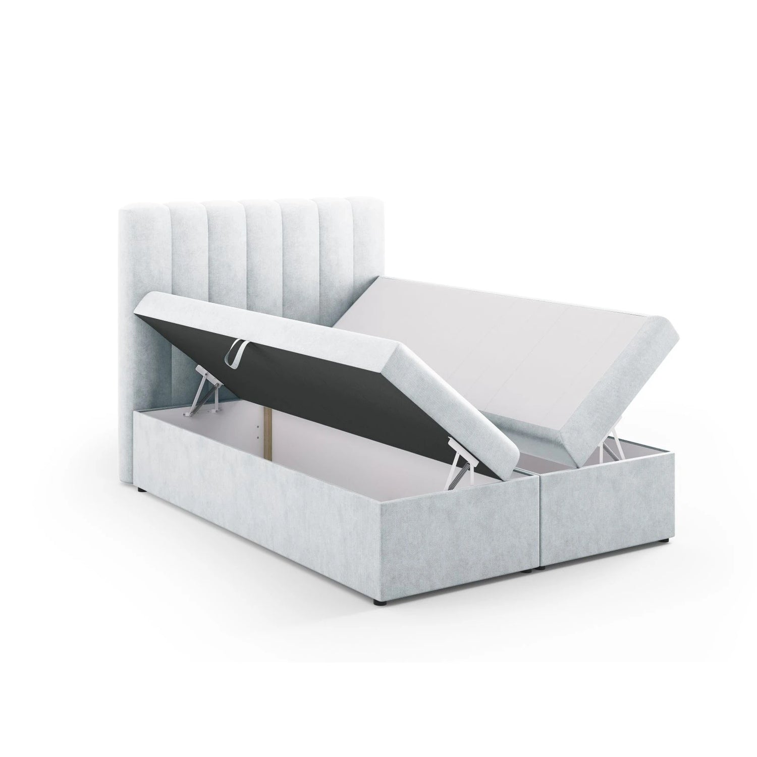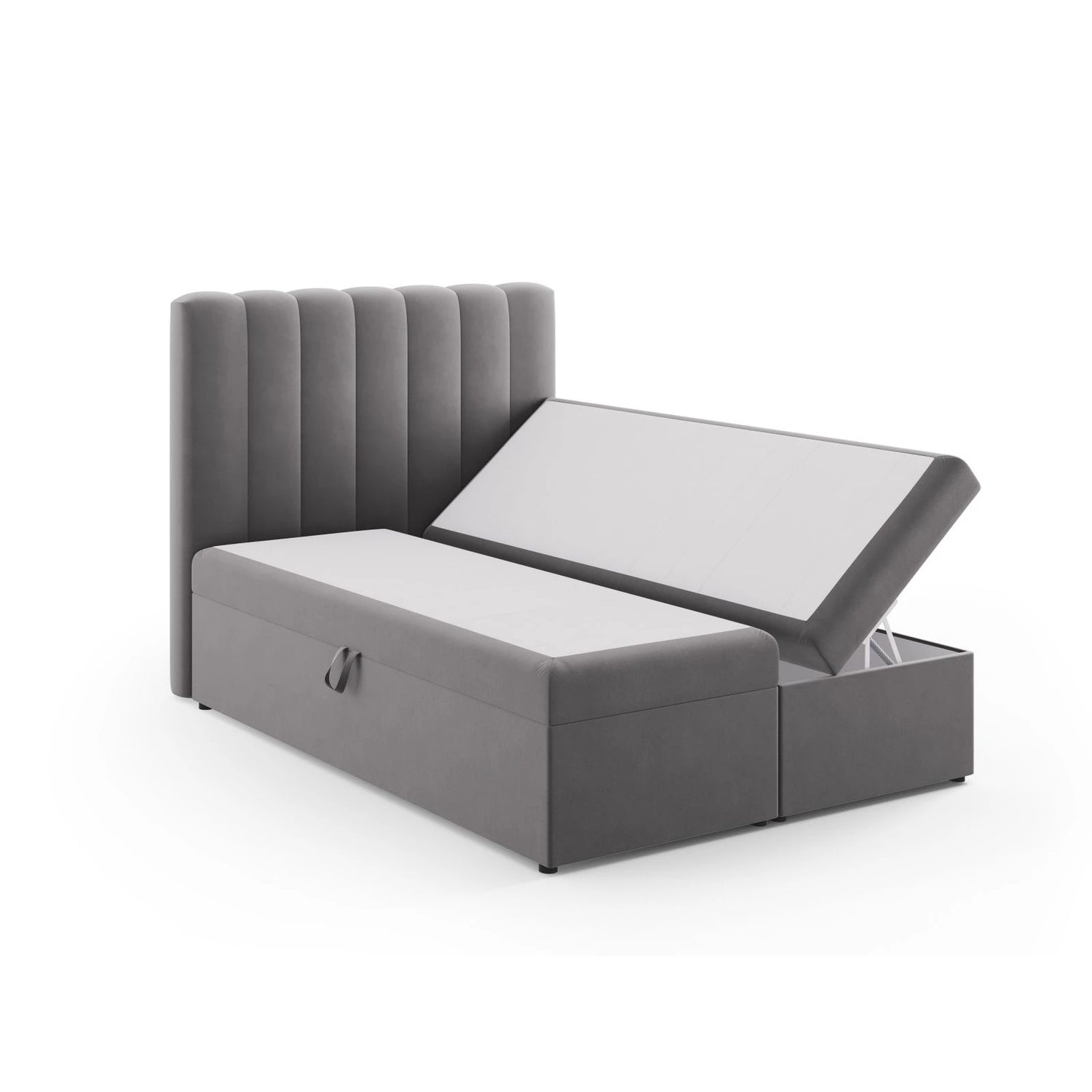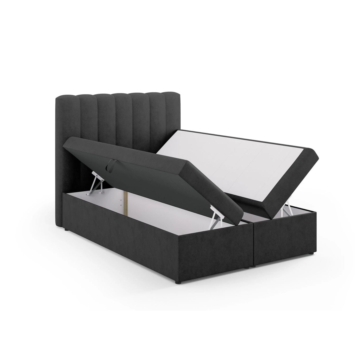 Kelp box spring bed with storage space and headboard in velvet or textured fabric, 140x200 cm - Textured fabric (Mol04), Grey Beige Melange is backordered and will ship as soon as it is back in stock.