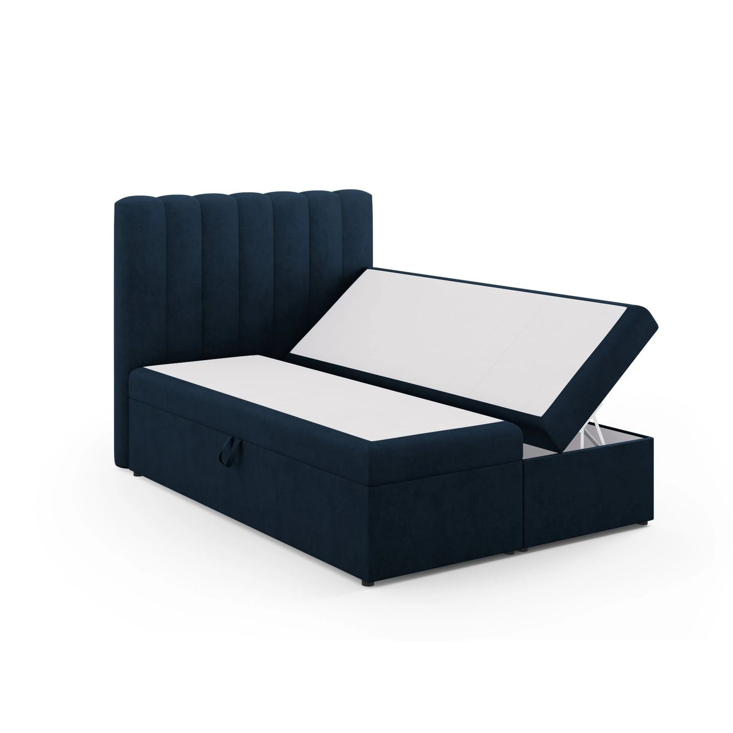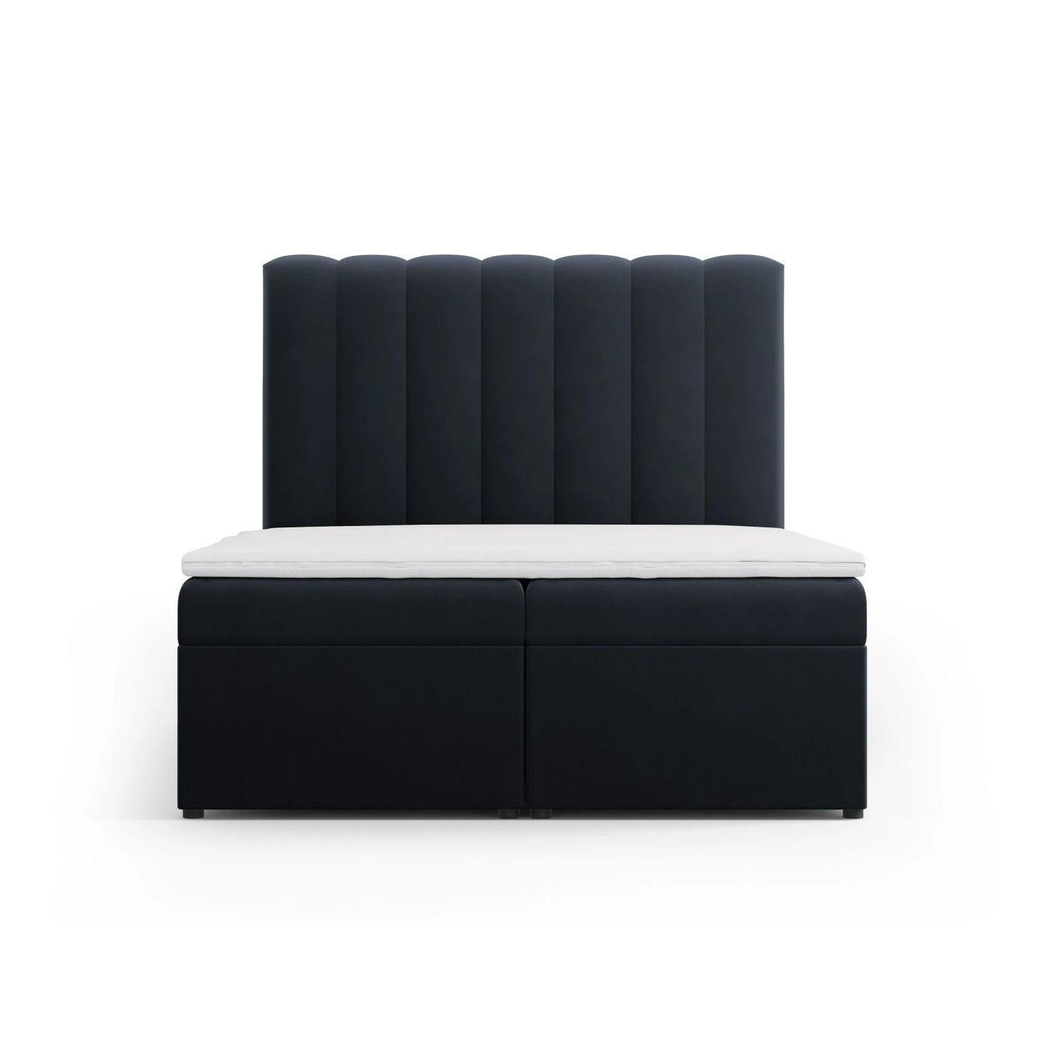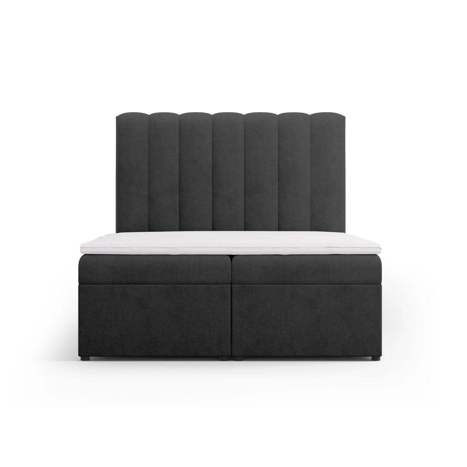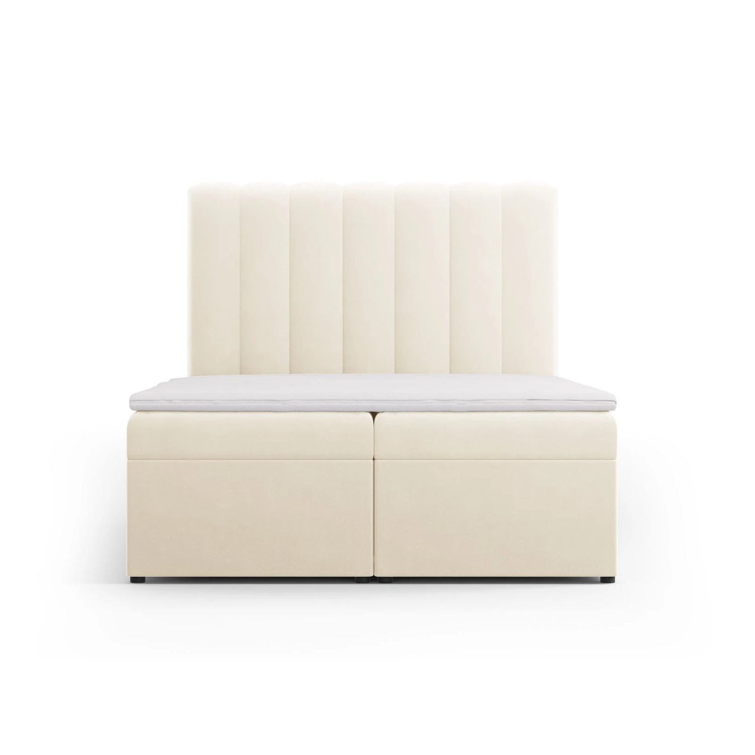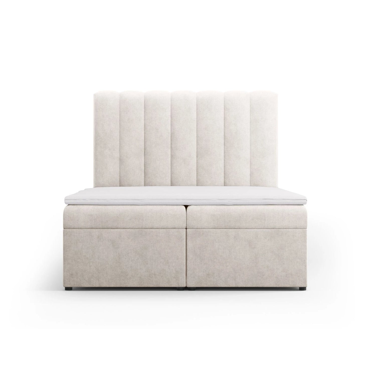 Experience ultimate sleeping comfort with the Kelp box spring bed with storage, featuring a 140x200cm sleeping surface. The elegant headboard provides support and comfort. The Kelp continental bed embodies luxury and comfort, blending modernity with classic elegance. Its clean lines and subtle details lend character to any room, while its neutral colors complement a variety of interior design styles. Your comfort was the focus when developing Kelp. The durable spring mattress provides perfect support for your body, ensuring a restful sleep and a refreshed day. The soft backrest with its high-quality upholstery makes every moment in bed a true pleasure. The large compartment under the mattress offers space for bedding and other textiles. It can be conveniently opened from both sides. The high-quality materials and solid construction ensure that you will enjoy this bed for many years, retaining its original appearance and comfort. 4 cm thick topper made of polyurethane foam 25 kg/m³ Mattress thickness 14cm Headboard made of polyurethane foam 25 kg/m³ The number of sections on the headboard can vary depending on the size of the bed.