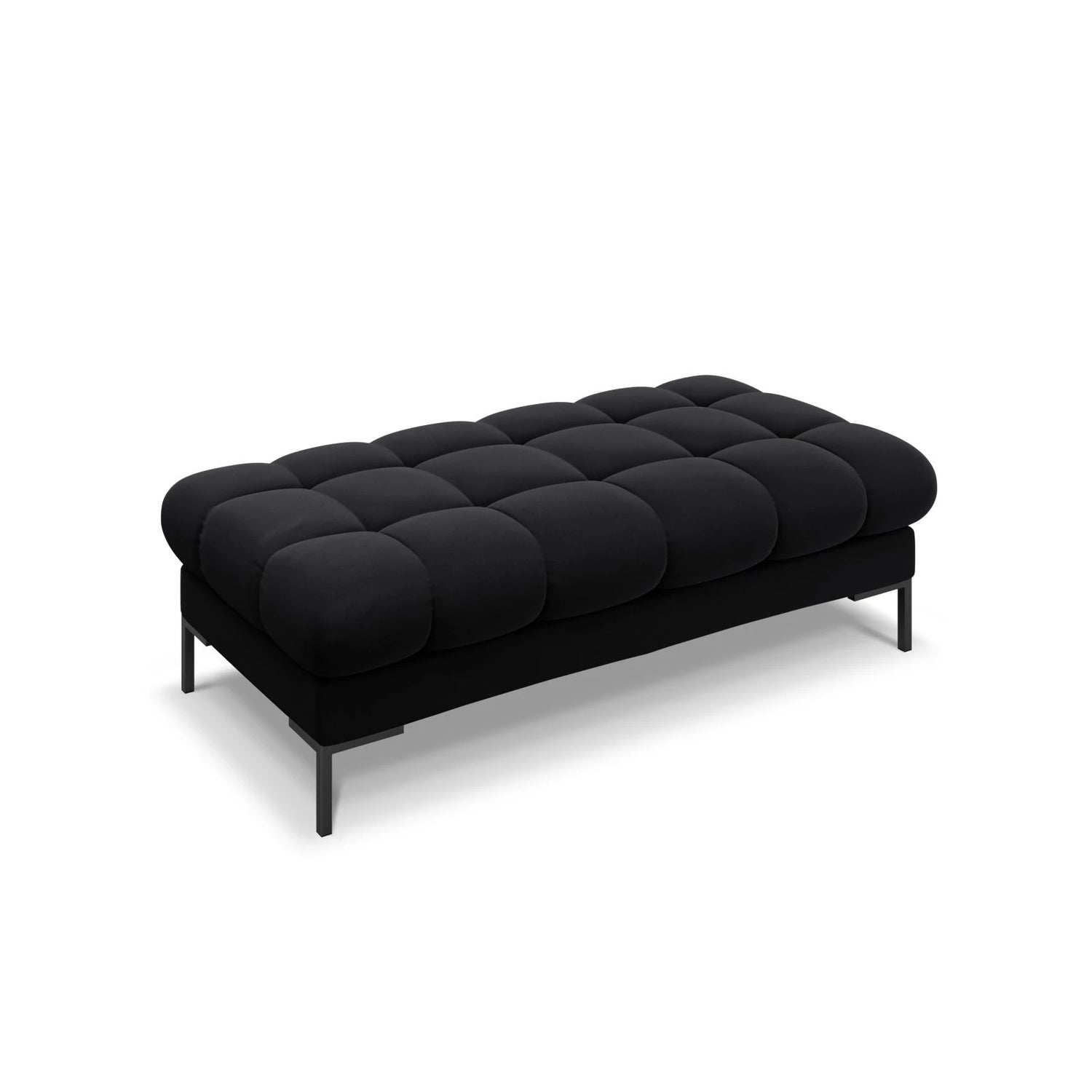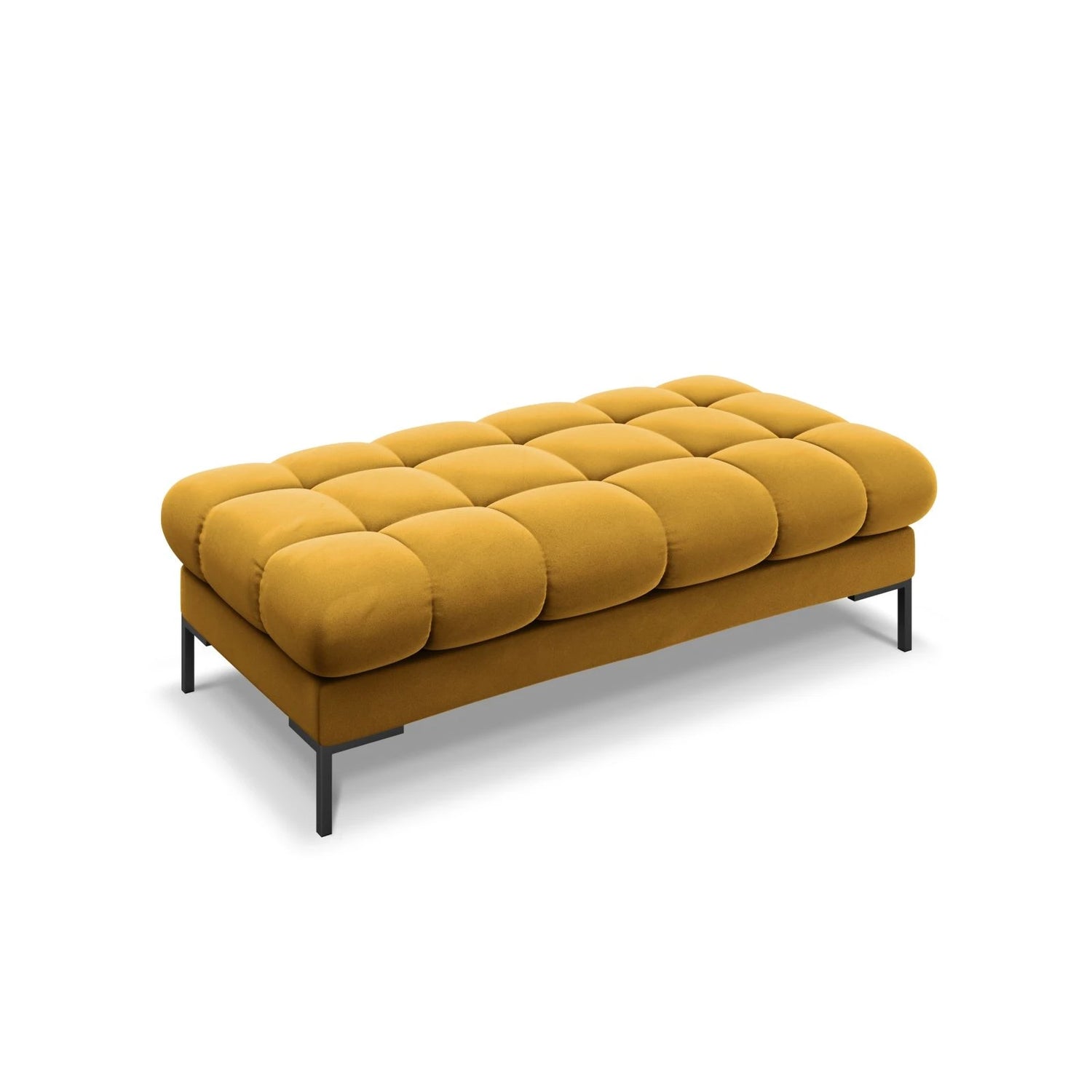 Need a comfortable seat? Micadoni's Mamaia collection offers a large, bench-shaped pouf with striking quilting and gold legs. With its detailed quilting on the back and seat, the Mamaia "bubble" collection is unique and distinctive, filling any interior with positive energy. One look and you'll be eager to relax, or better yet, spend time watching your favorite movie or reading a good book. Side cushions with decorative trim add even more comfort and a stylish touch. The luxurious upholstery in a soft, durable material and the geometric metal legs embody modernity and elegance, brightening your everyday life. The Mamaia pieces are exceptionally durable and sturdy, and they look fantastic when combined with other items from the collection.