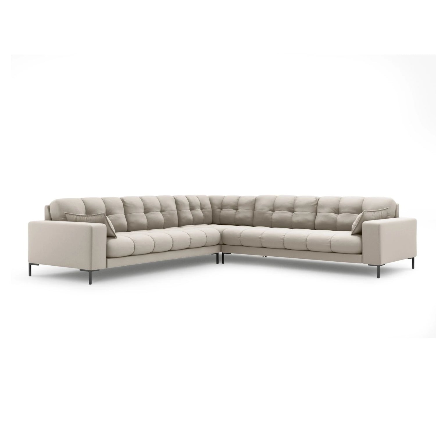 Mamaia 5-seater corner sofa, symmetrical, black metal legs, with textured fabric cover (Nev02) in light beige, 256x256 cm