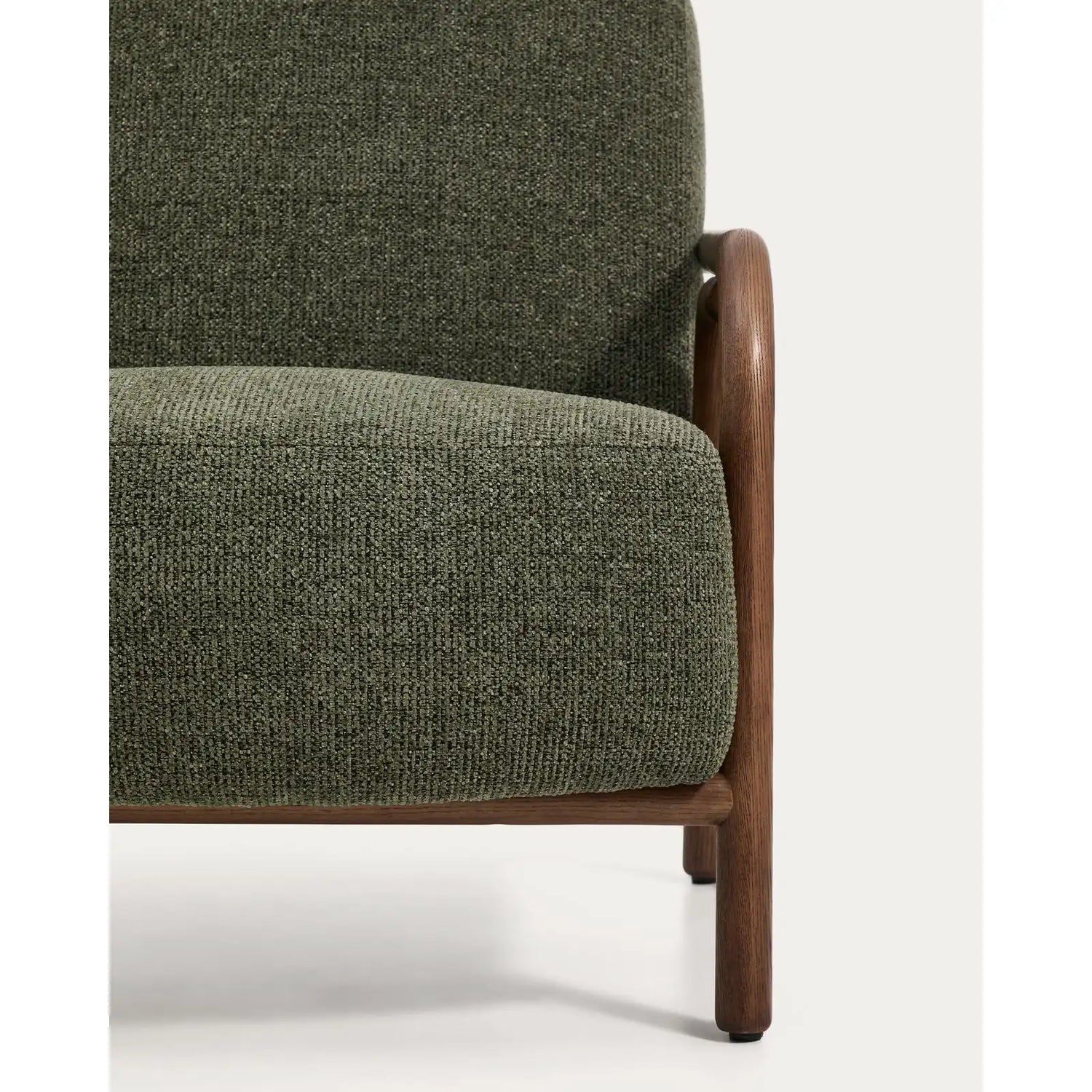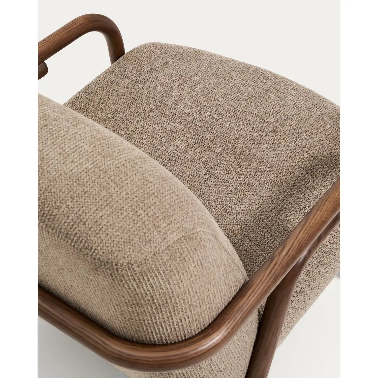 Sylo armchair in beige chenille and solid ash wood with a natural finish, FSC 100%