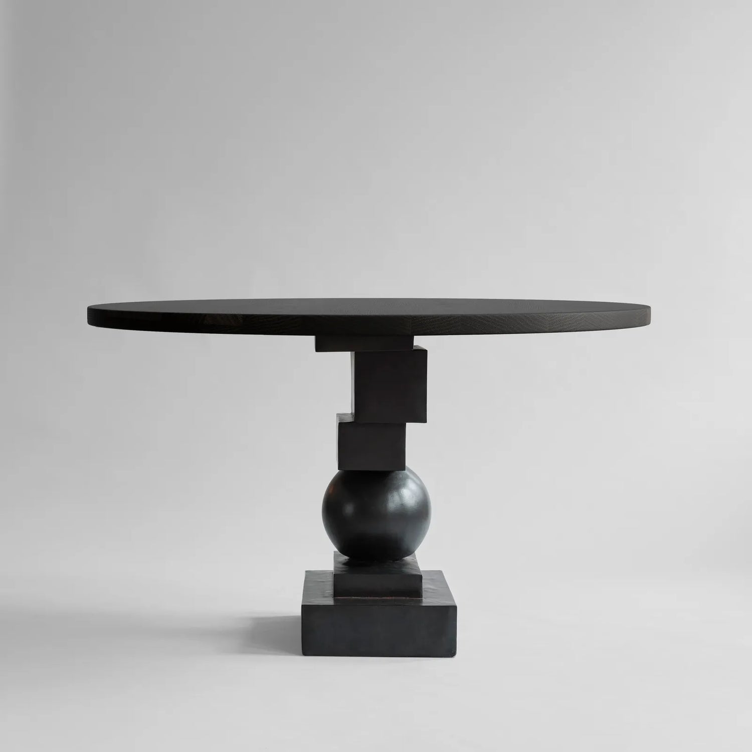 Table de salle à manger d'artiste en chêne, finition noir café, Ø120 cm